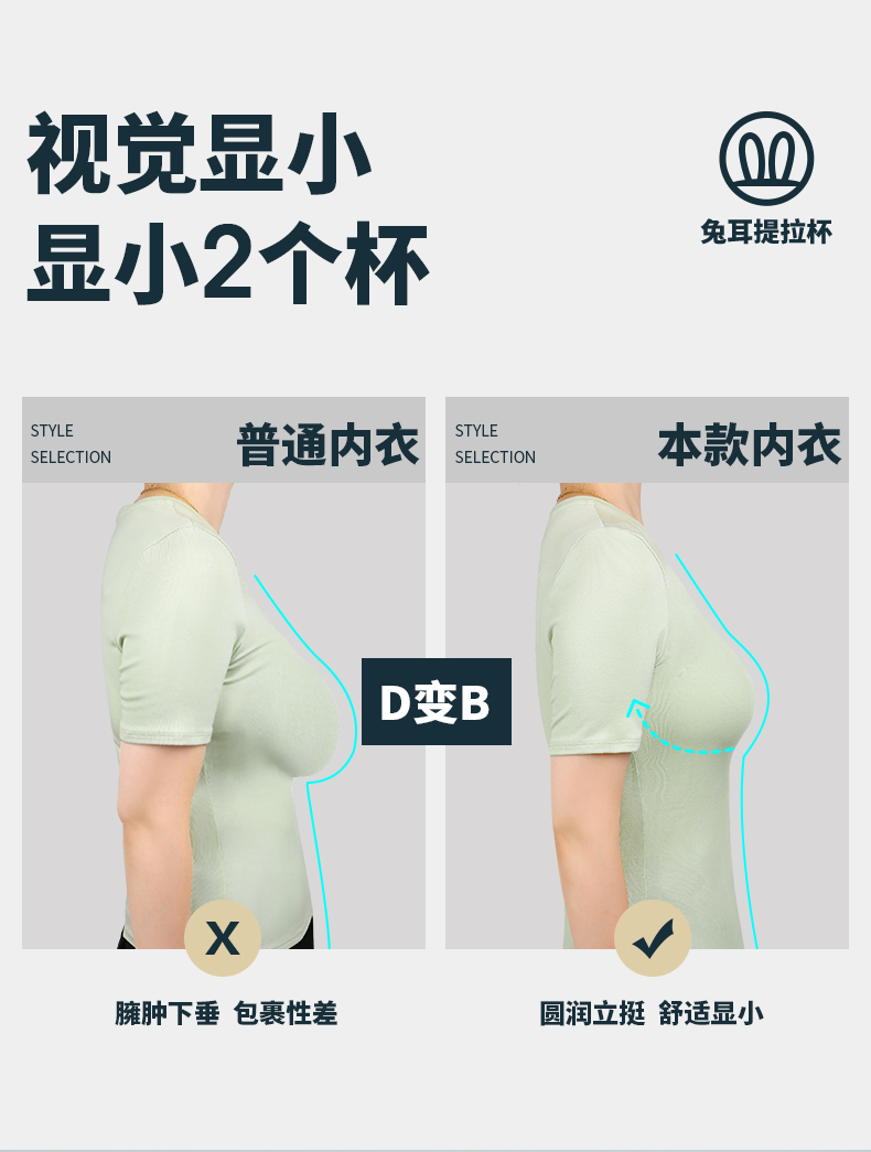 T1-💗【B-E杯】【无果冻胶版大胸显小】【 美国莱卡面料版 四季超弹透气】专利双层U型提拉带防下垂、超弹承托 显小女神+提拉悦动【提拉系列】