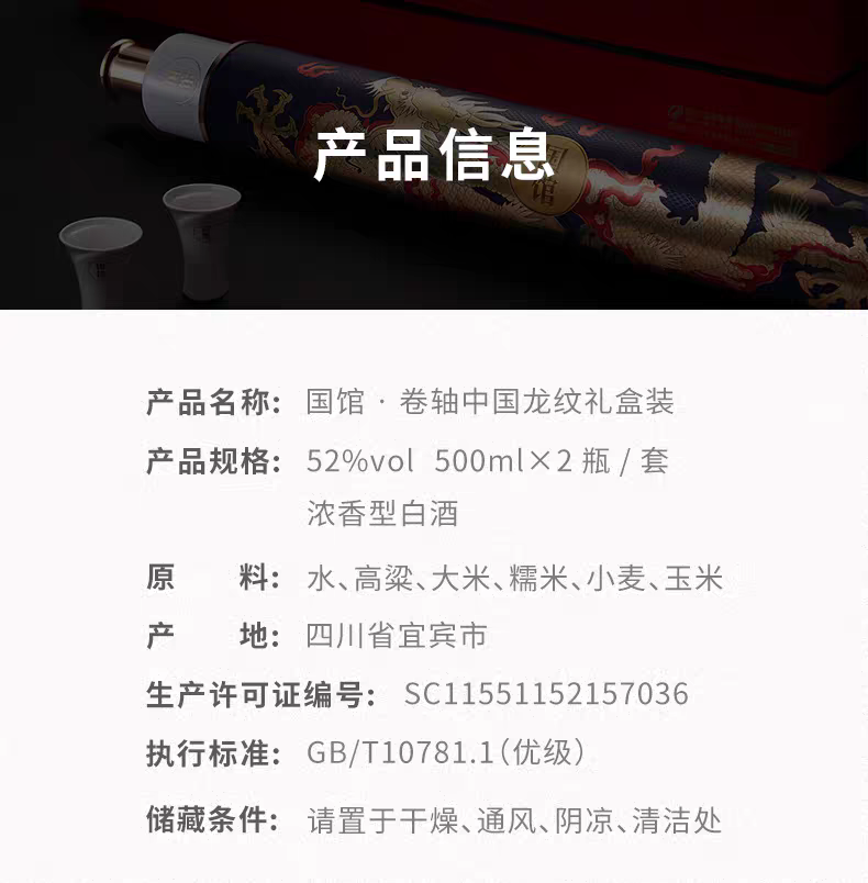 国馆-卷轴中国龙纹礼盒(浓香型白酒) | 500ml*2 52%vol,清仓价199元