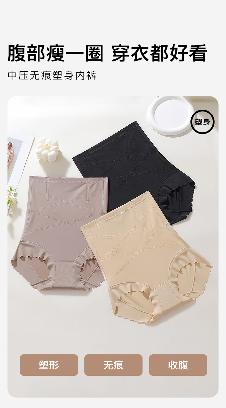 无痕收腹塑身裤高腰中压收小肚子吸湿透气底裆内裤女墨染流云塑身裤