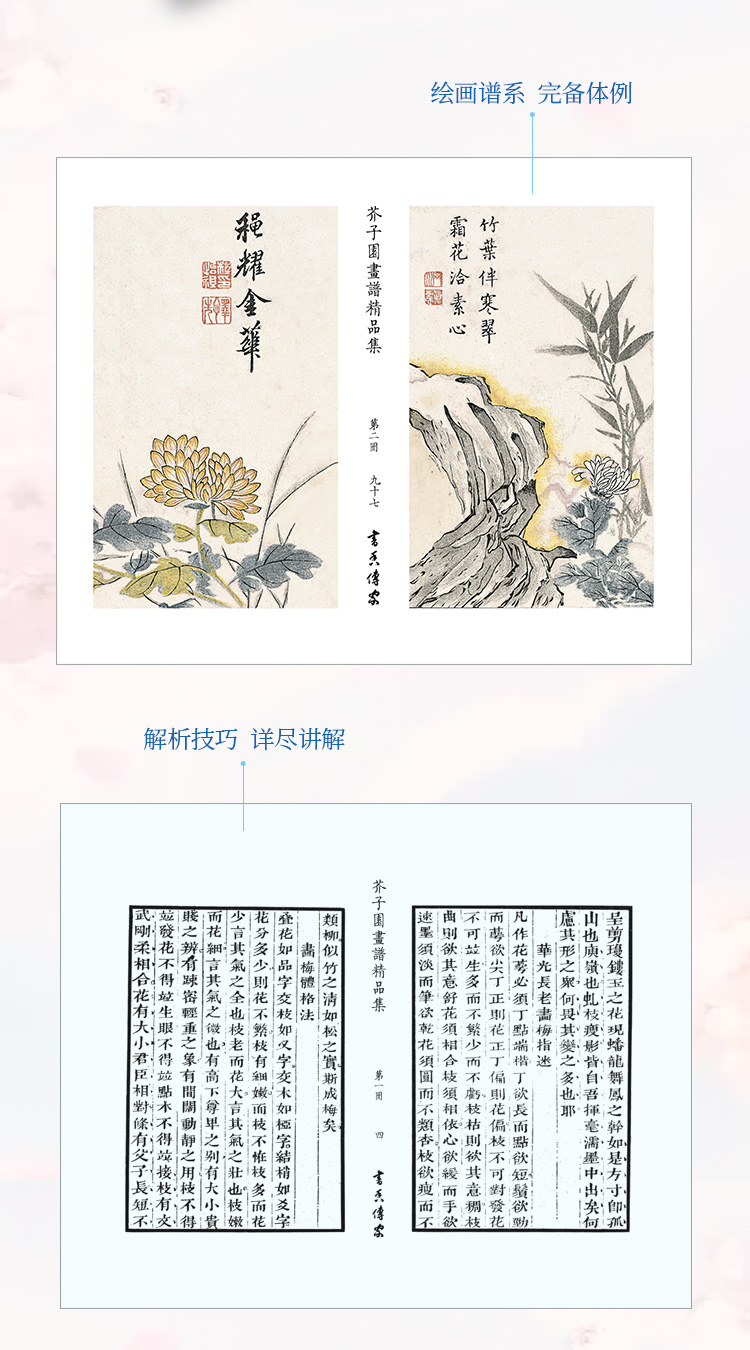 《芥子园画谱》介绍了中国画的芥子园画谱的技法。画谱系统介绍了中国话的基本技法,线条明了,易于初学者习用。不仅具有文物价值,收藏价值,而且为研究者,学习者提供了详细的资料。(注意:本书只截取了部分内容编辑成册)