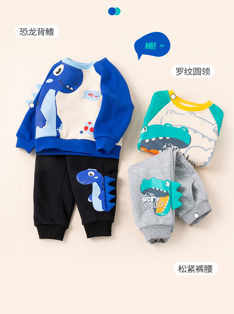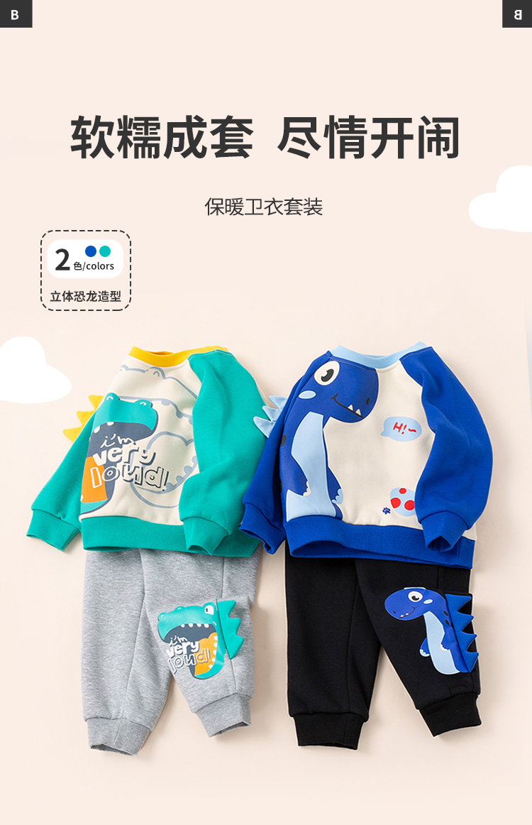 贝贝怡童装男童套装宝宝长袖卫衣小童长裤保暖休闲裤子卫衣两件套223T2535