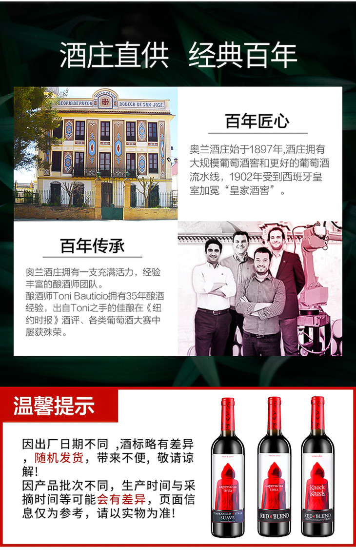 奥兰小红帽干红葡萄酒 750ml*6瓶
