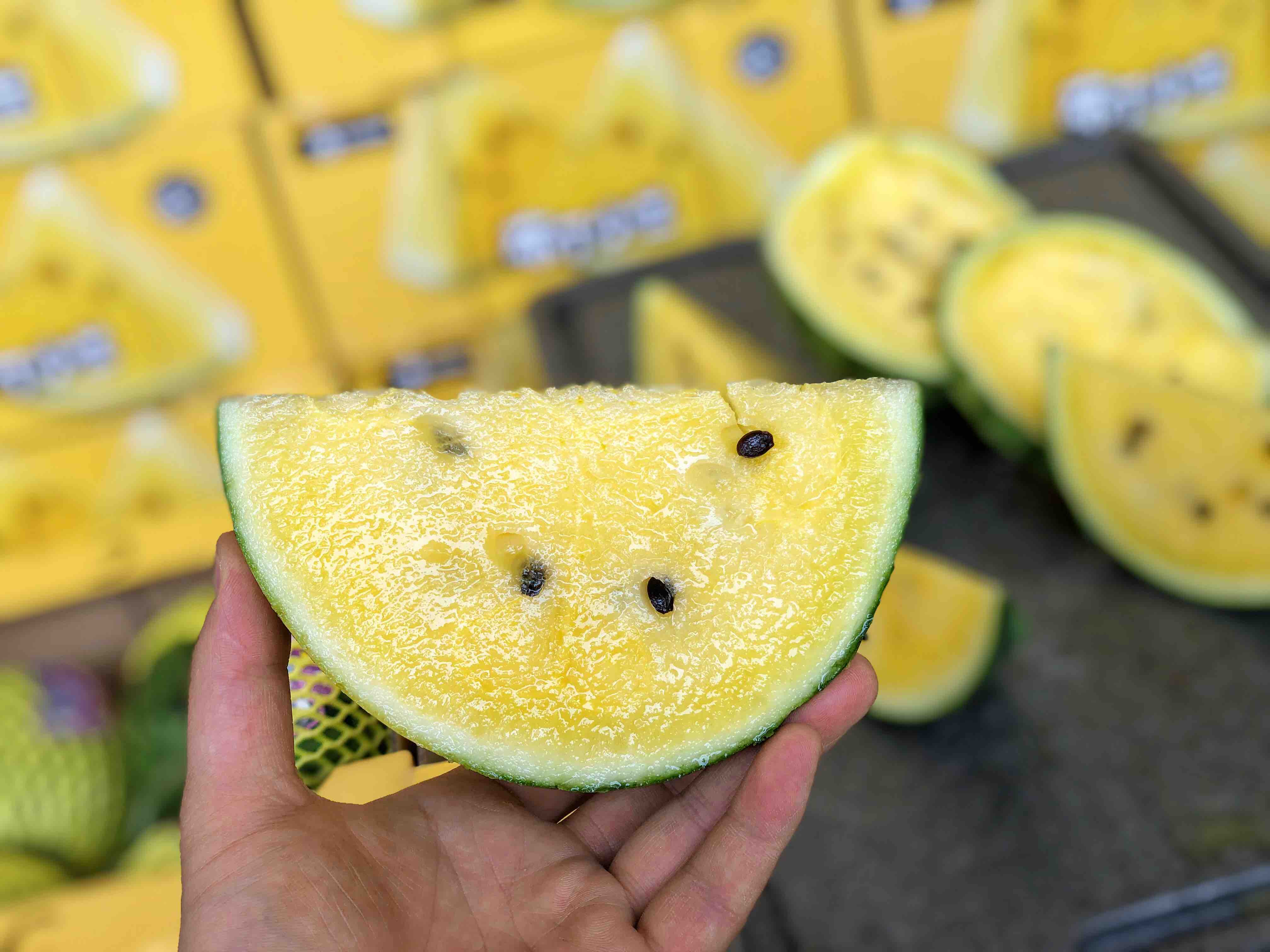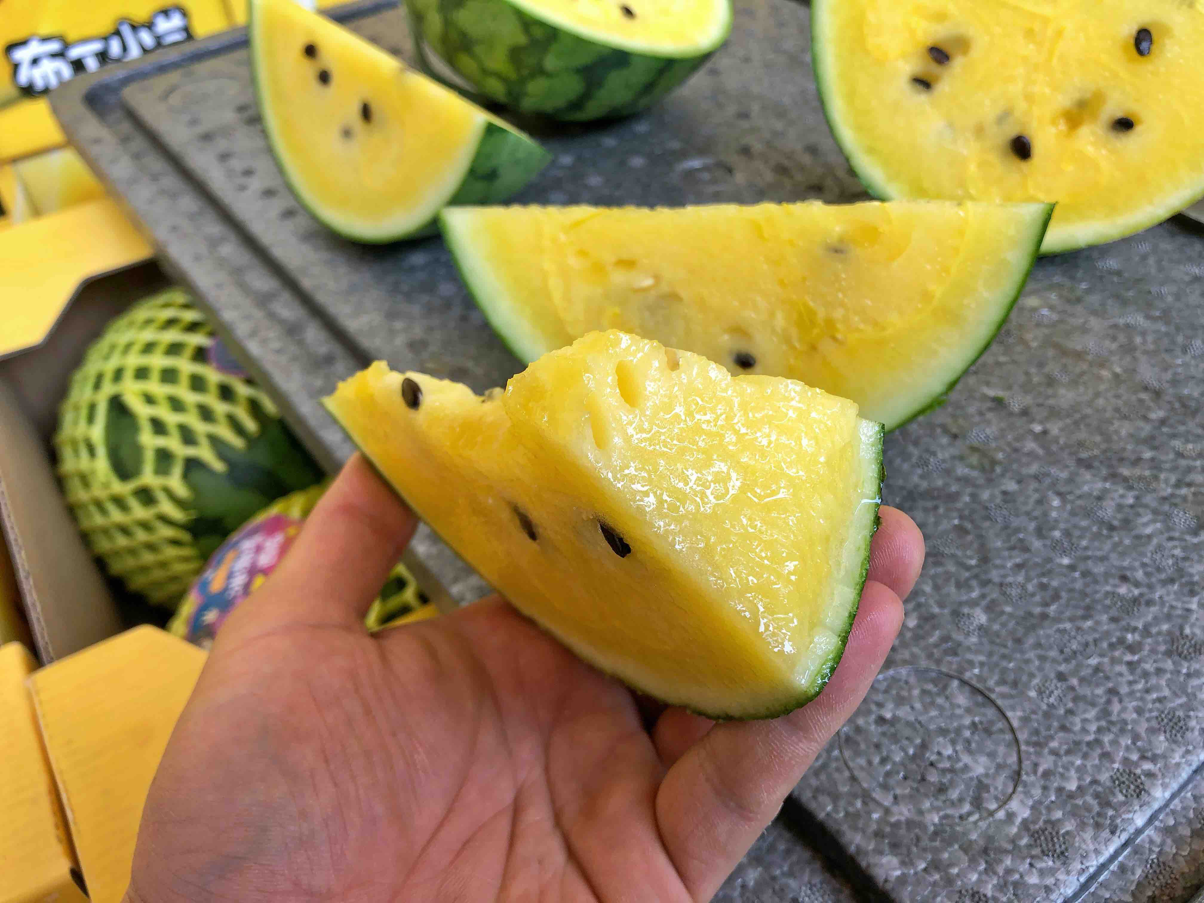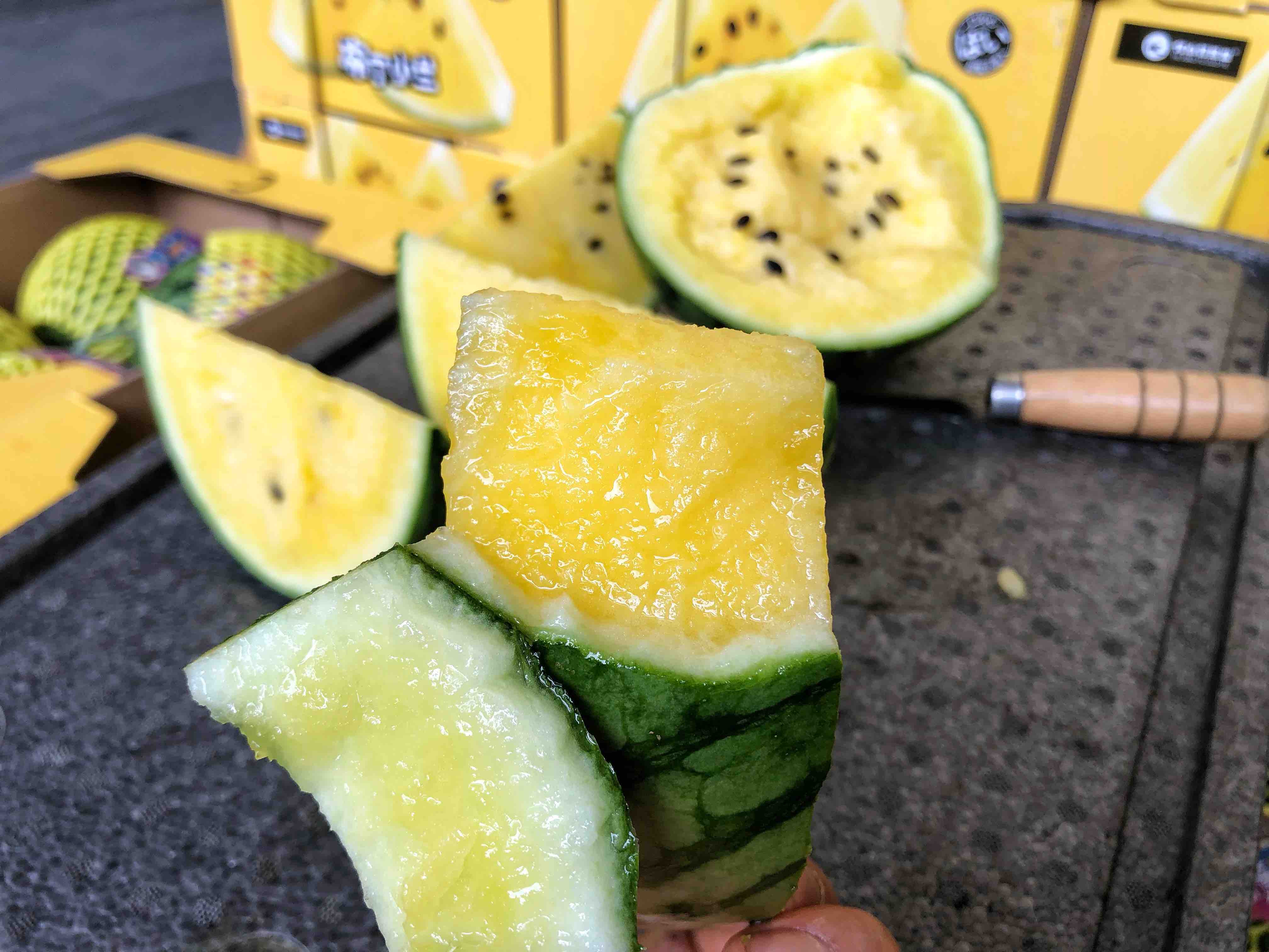 【小羽 黄西瓜】小羽黄西瓜/黑骑士,台湾引种,布丁小兰西瓜,黄瓤黑籽,口感嫩甜多汁,水份超级足!