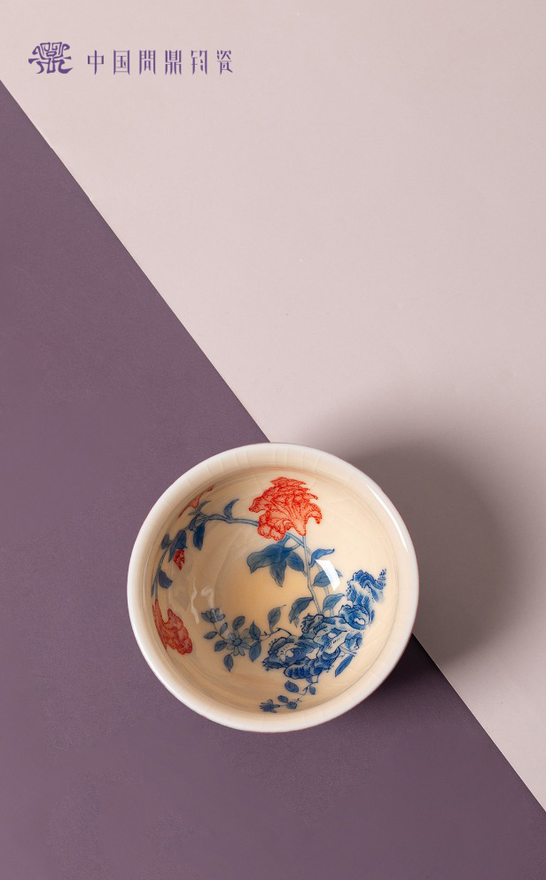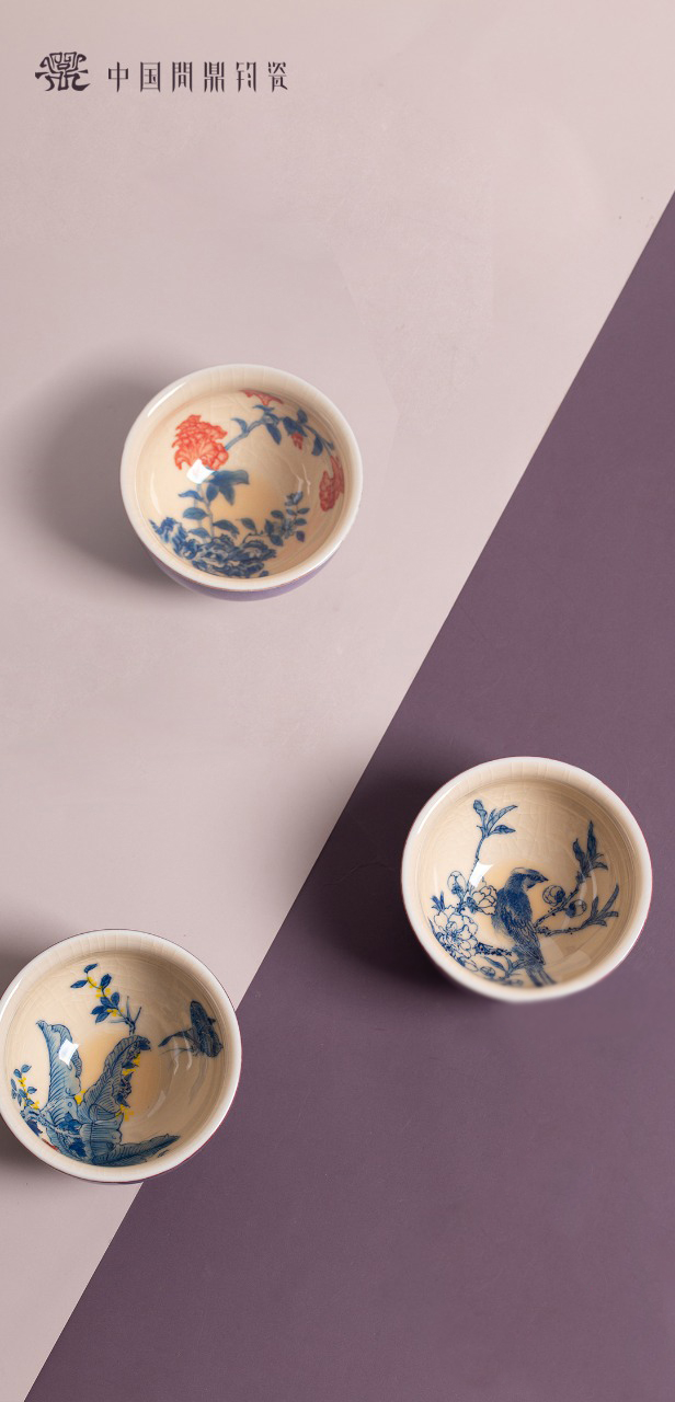 问鼎钧瓷鹅黄青花闲意杯(惊鸿艳影)