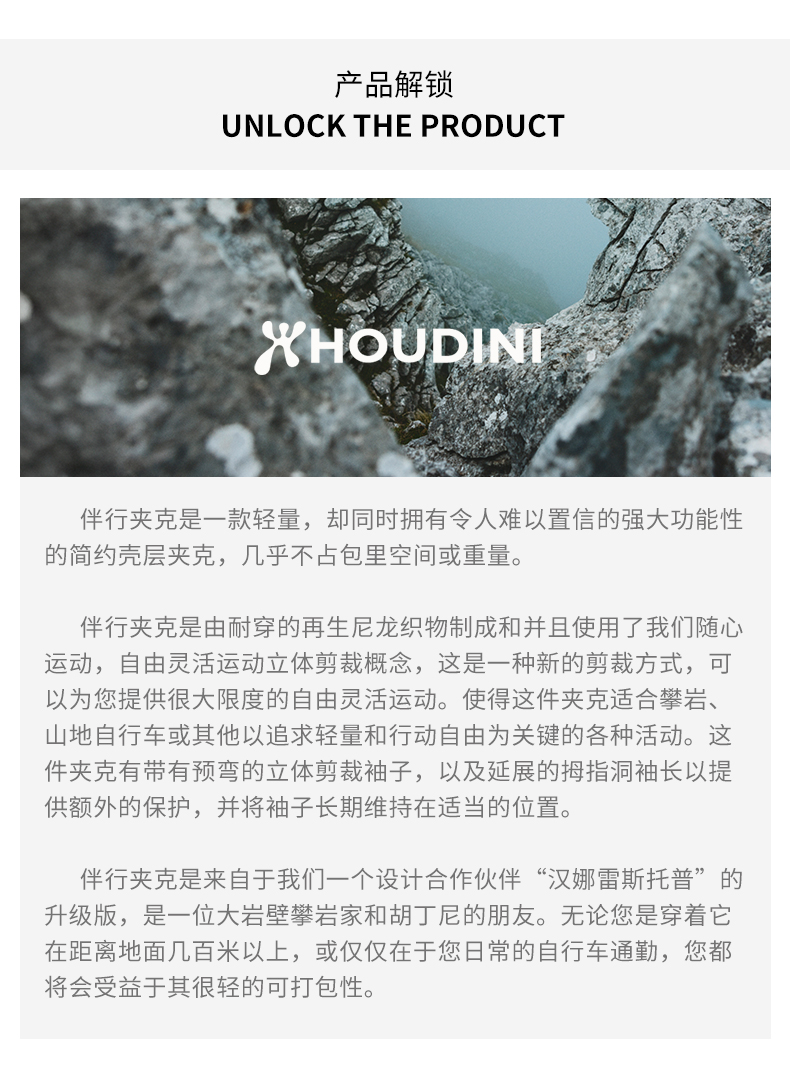 HOUDINI胡丁尼Come Along Jacket 伴行 女户外轻薄防风夹克 147694