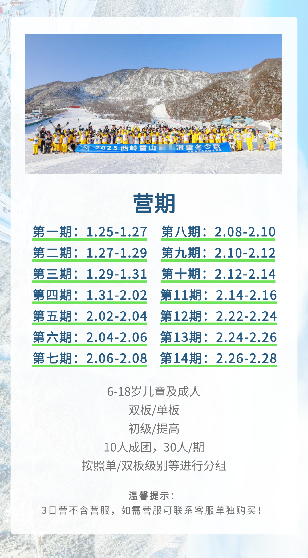 早鸟特惠❗️独立营|西岭官方滑雪营3天2夜 双板初级