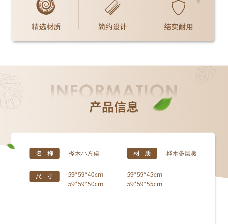 3-6岁桦木小方桌