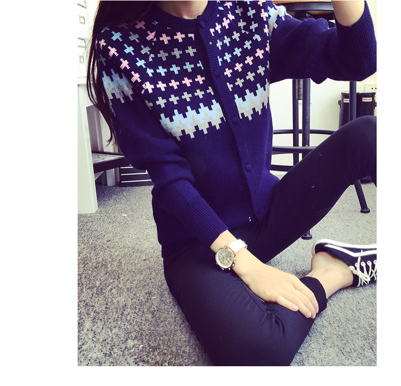 【服饰鞋包】新款秋装 韩版宽松单排扣圆领提花毛针织开衫 女装上衣薄外套