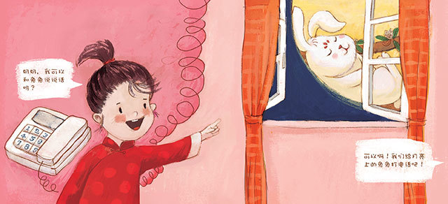 中秋节这天晚上,全家吃了团圆饭。晚饭后,伊伊的奶奶讲了嫦娥奔月的故事,伊伊兴奋地给月亮上的兔子打了个电话,并给兔子讲起了自己在中秋节一整天里的经历。其实兔子不是别人,正是伊伊的爸爸装扮的。