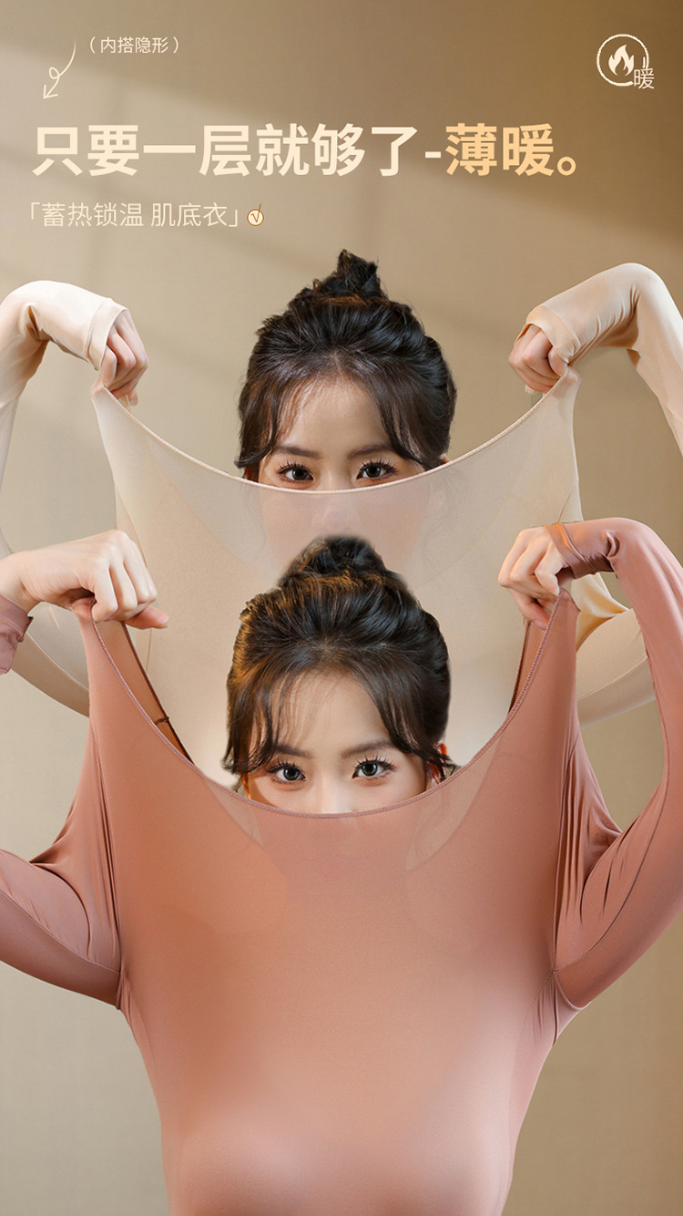 【秒杀❗️49.9抢2套🔥保暖套装】锁热蓄暖,高弹塑形,薄如蝉翼,轻薄肌底衣!打底保暖内衣上衣套装女粉丝专享