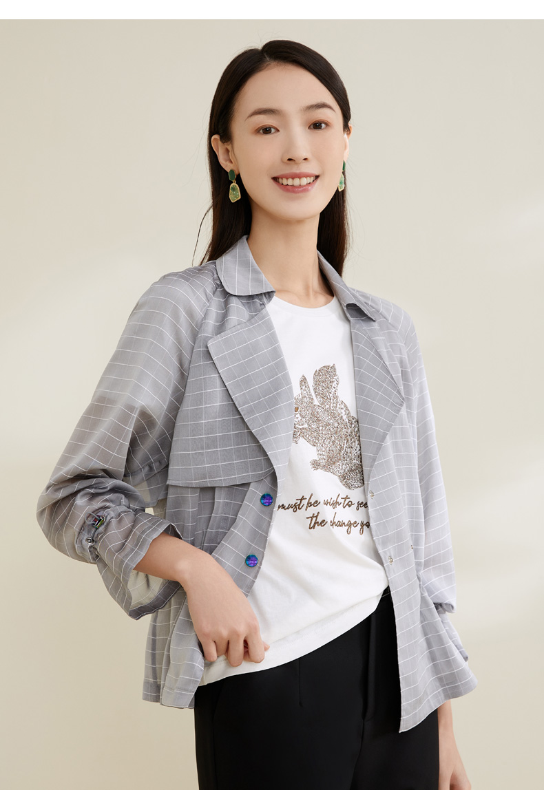 玳莎格子欧根纱短外套通勤新款高级感时尚气质上衣女 CA37301
