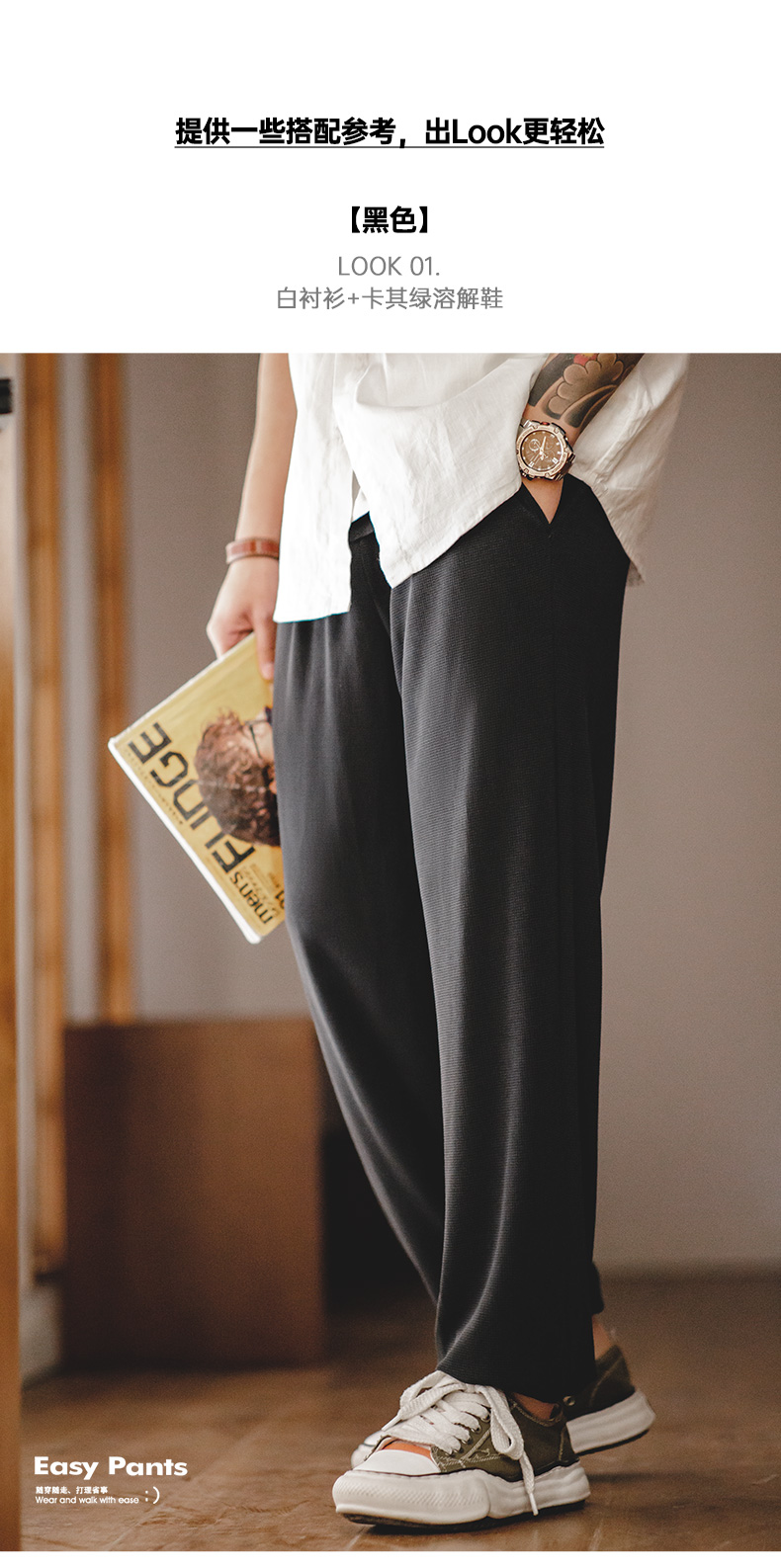 马登工装 美式休闲Easypants华夫格卫裤运动莫代尔垂感直筒裤男春