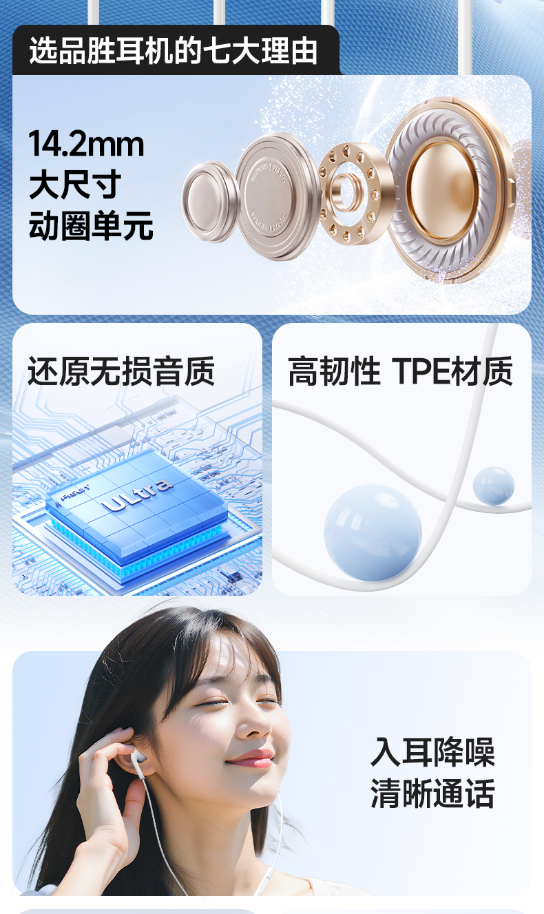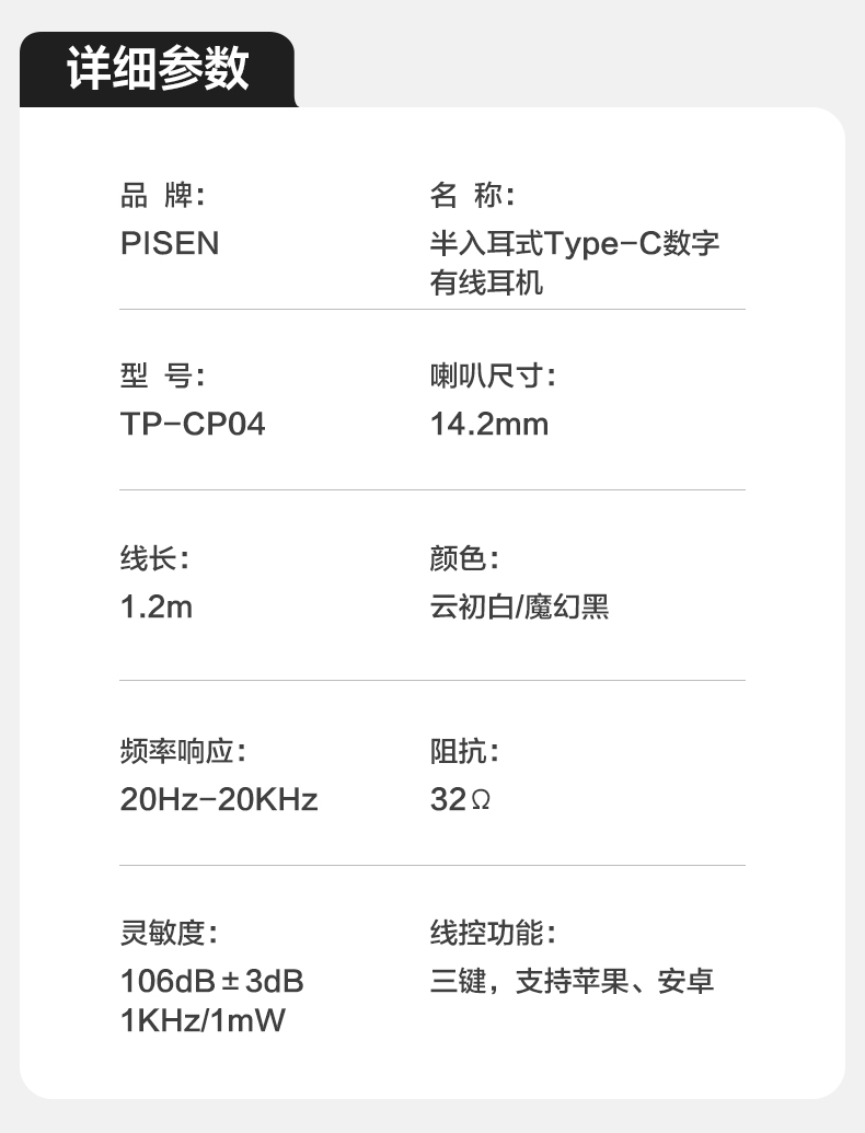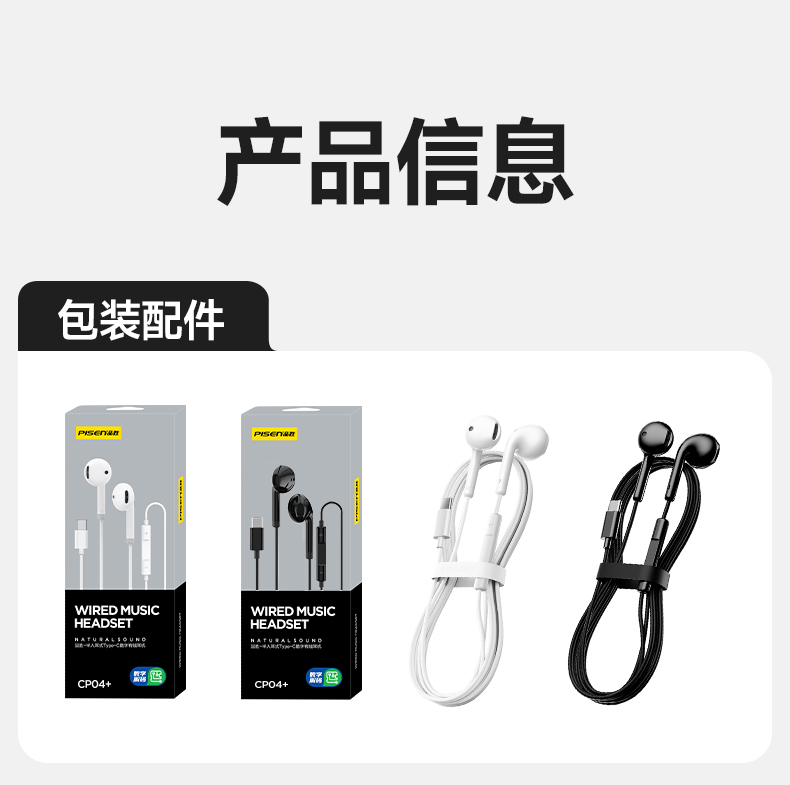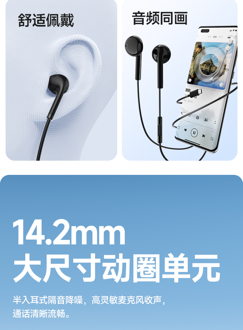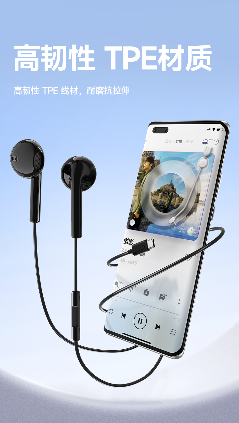 品胜 半入耳式Type-C数字有线耳机 耳麦游戏吃鸡K歌音乐耳机 适用于iPhone16小米华为oppo