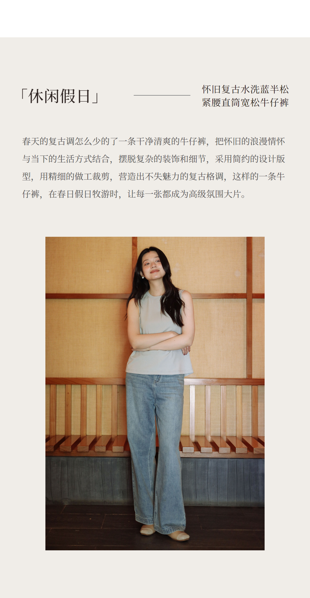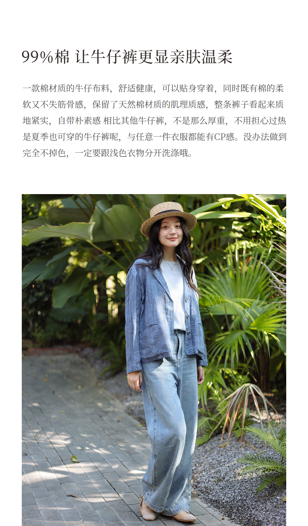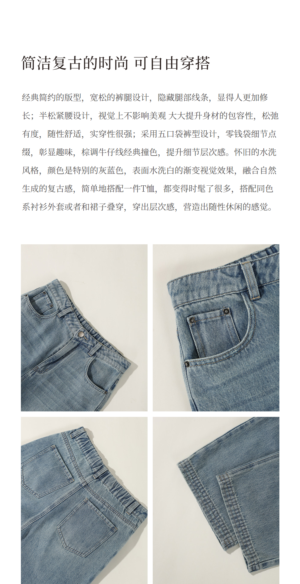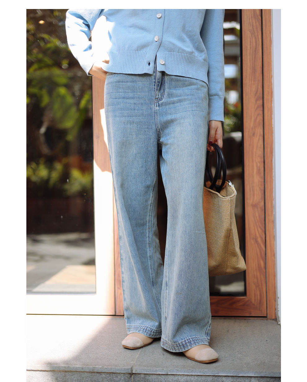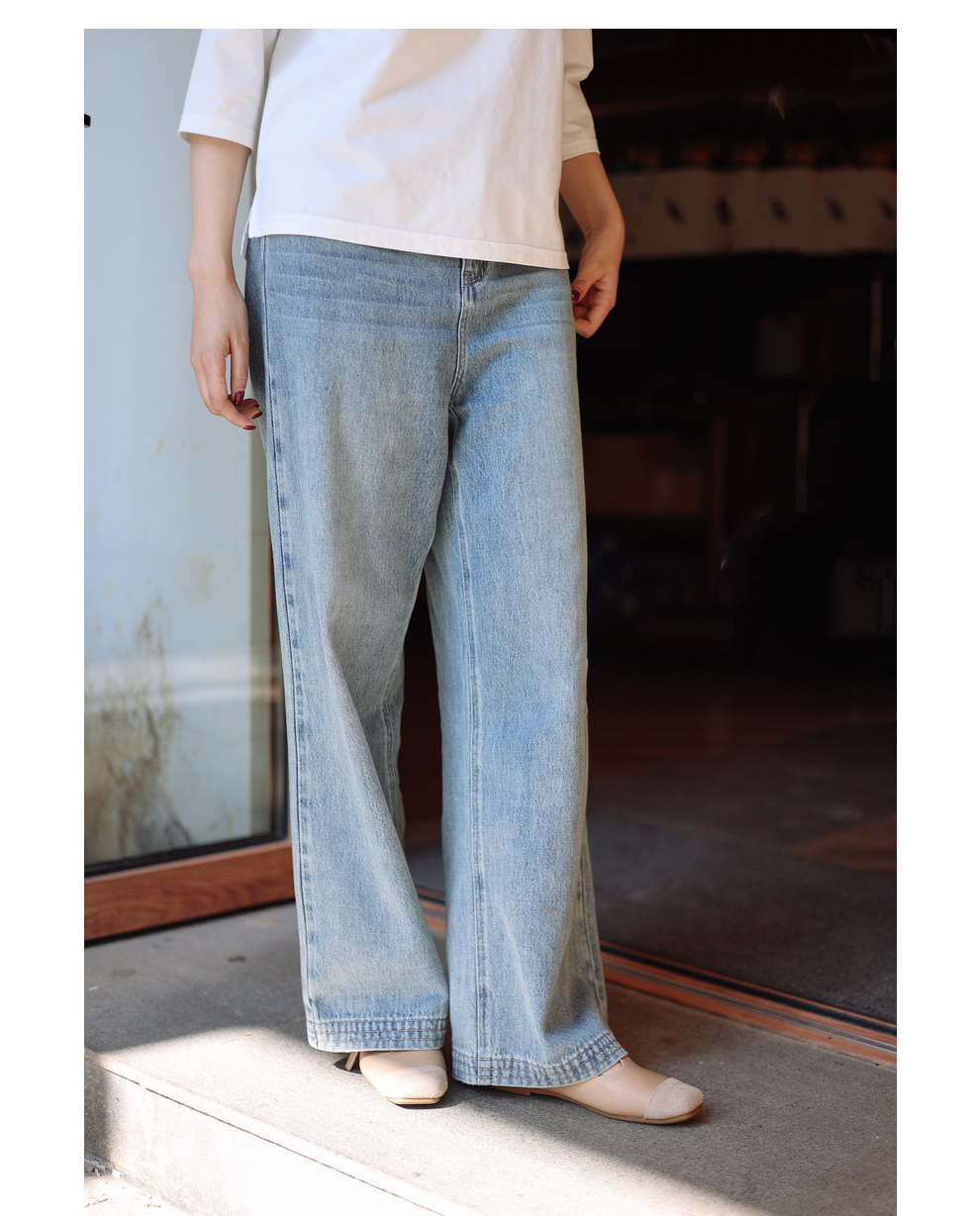 绽放087朵/2024春季经典怀旧复古简约水洗蓝宽松拖地阔腿牛仔裤