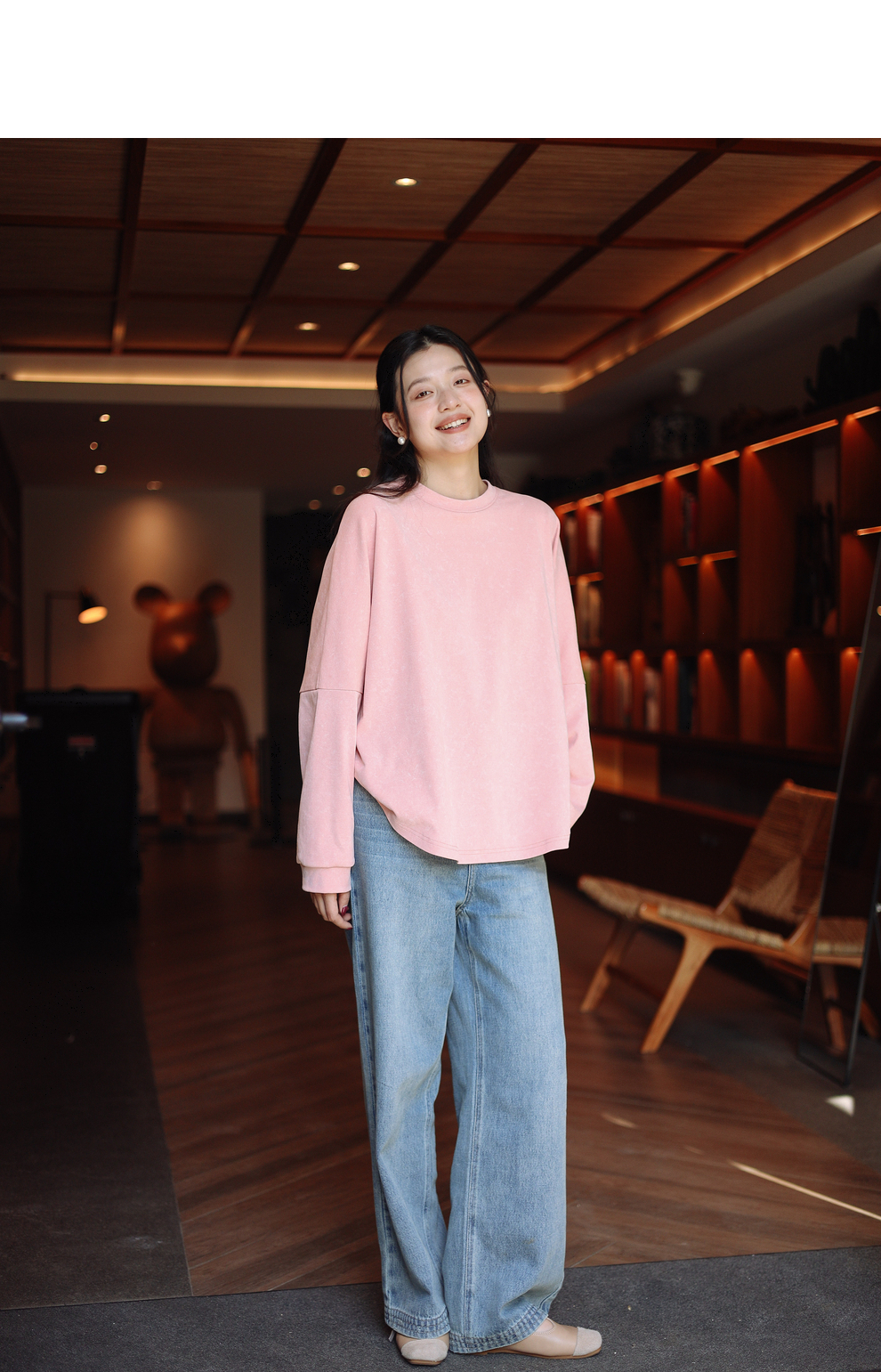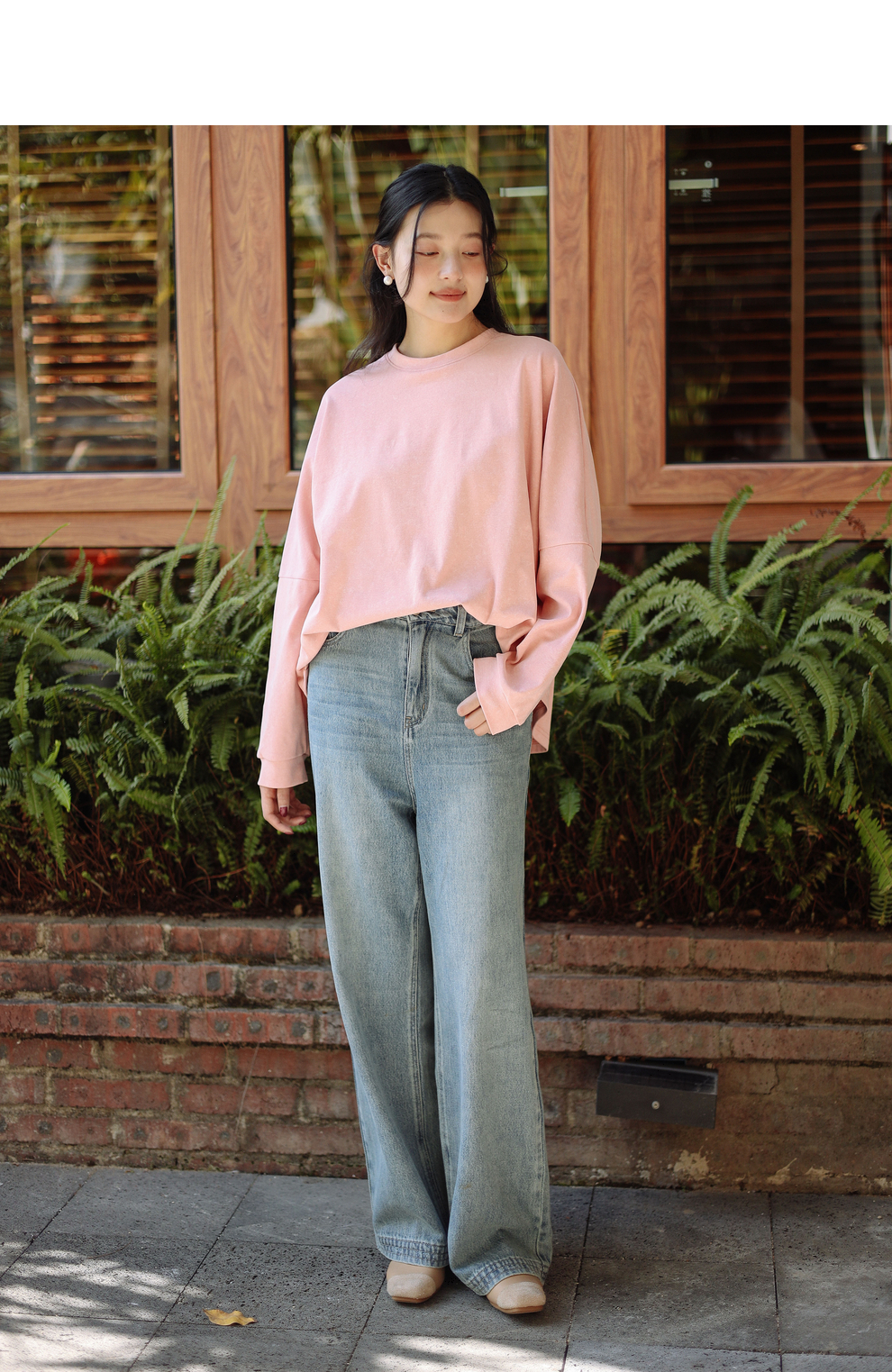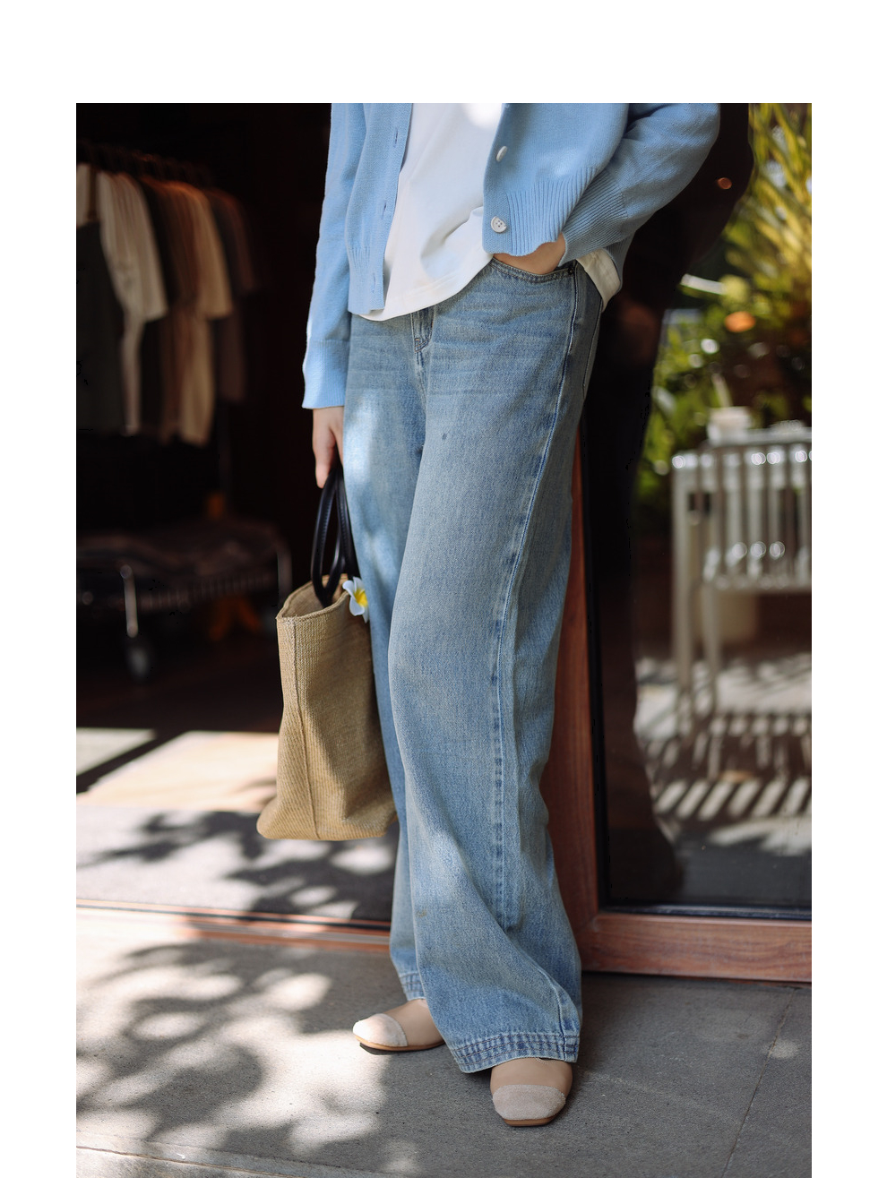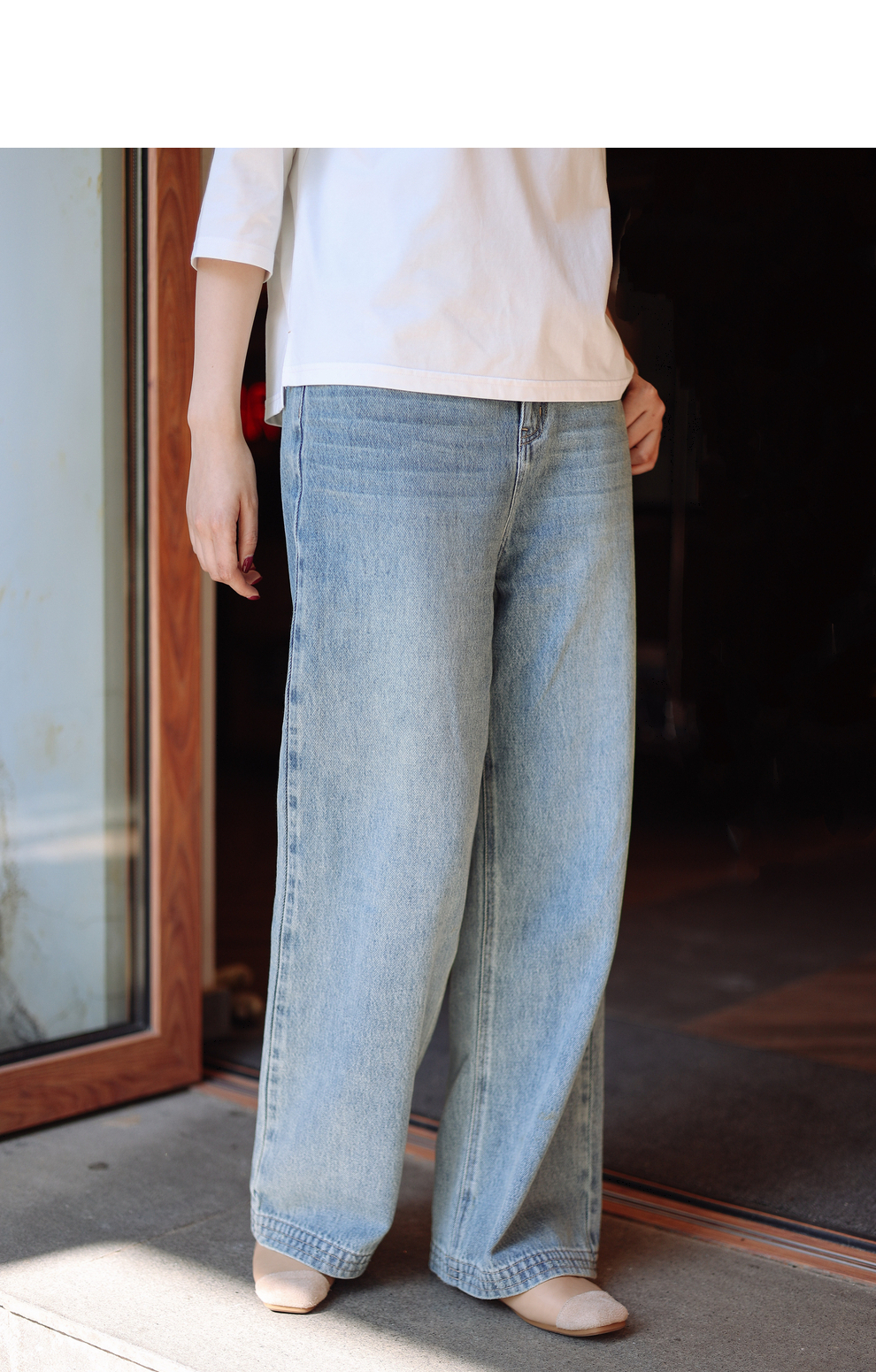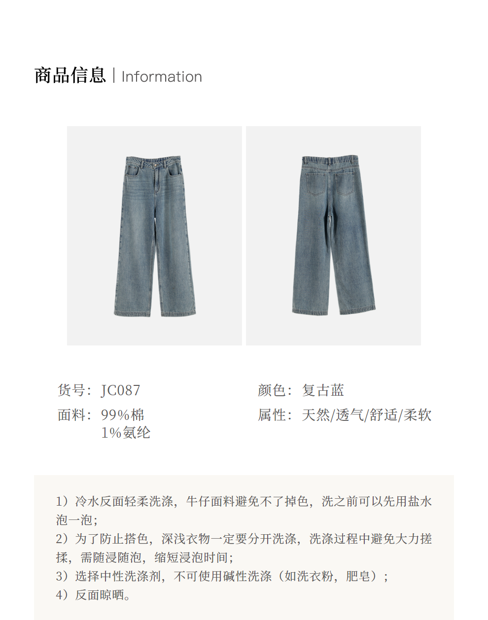 绽放087朵/2024春季经典怀旧复古简约水洗蓝宽松拖地阔腿牛仔裤