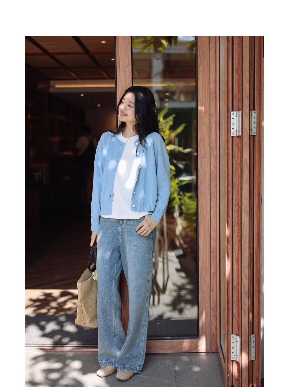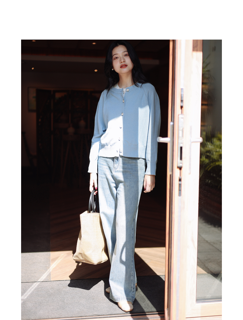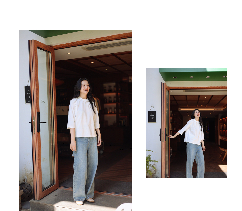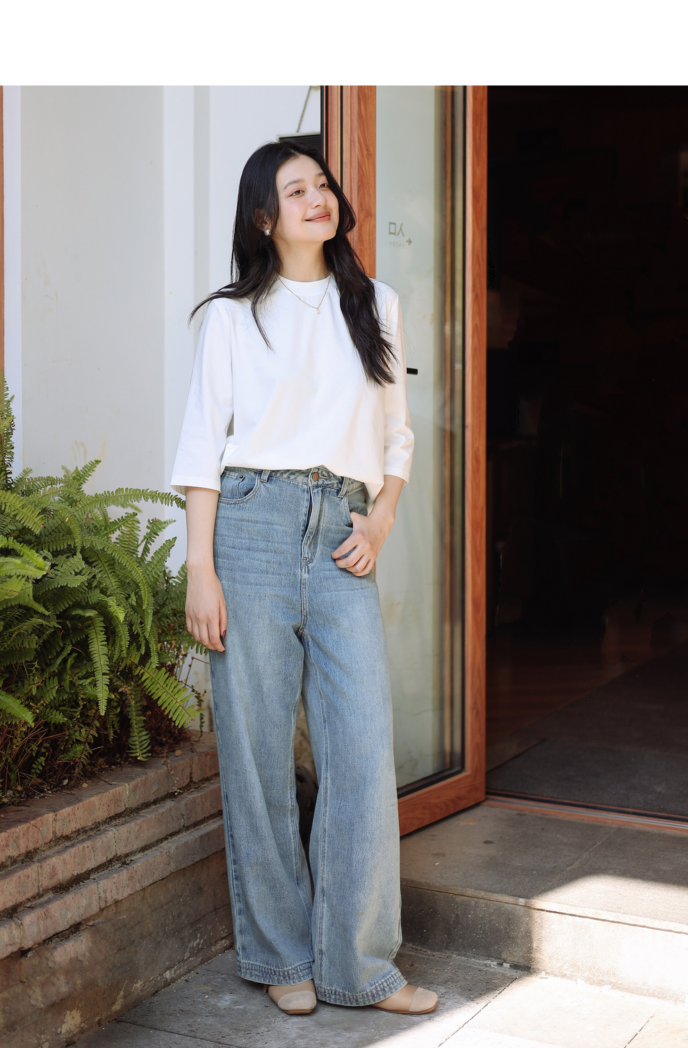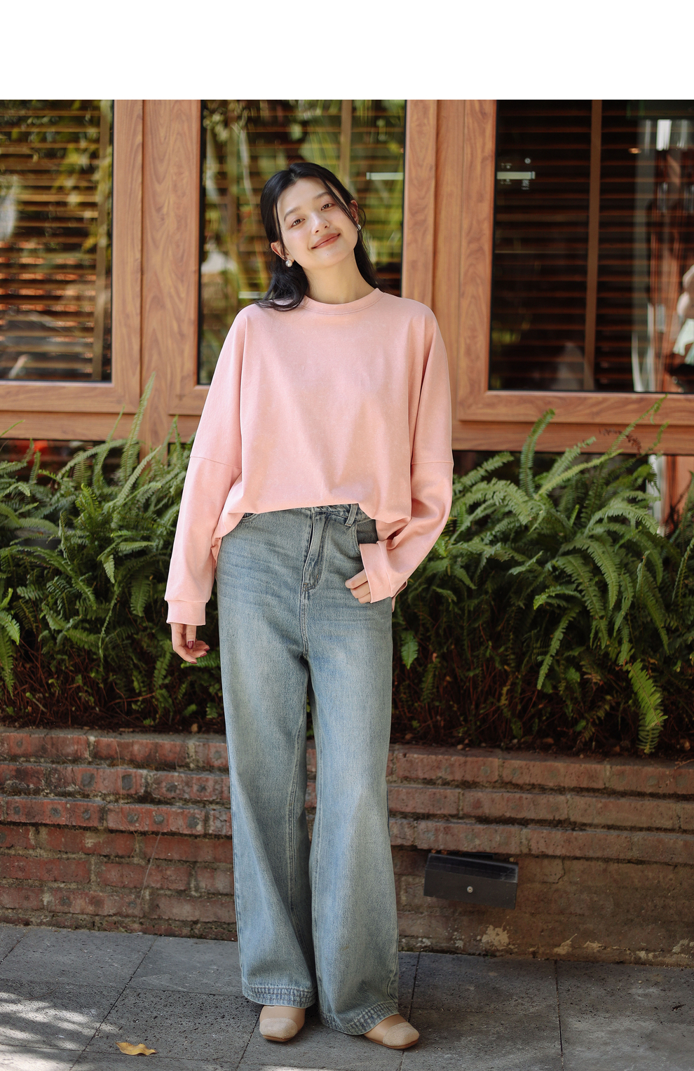 绽放087朵/2024春季经典怀旧复古简约水洗蓝宽松拖地阔腿牛仔裤