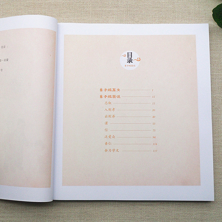 《弟子规》是一本童蒙养正的经典读本,通过诵读和实践可以帮助孩子建立正确的人生观、价值观,养成孩子良好的生活和行为习惯,培养孩子敦厚善良的性格。本书内容分为两部分:第一部分为《弟子规》原文,大字拼音排版,适合读诵;第二部分为《弟子规》图说,图文结合,温馨亲切的插图有助于孩子通过熟悉的生活场景进一步理解和学习《弟子规》在生活中的具体应用, 图后配有“易解”,以简洁易懂的文字对《弟子规》原文进行解释,让孩子的阅读过程更加轻松而印象深刻。本书适合儿童自主阅读或亲子共读。