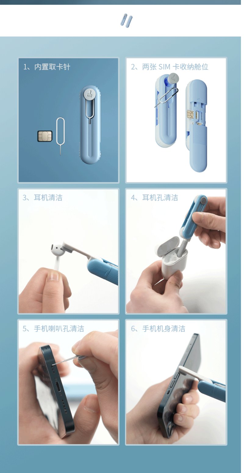 蓝牙苹果耳机清理神器手机听筒除尘工具手机孔多功能清洁刷耳机清洁笔