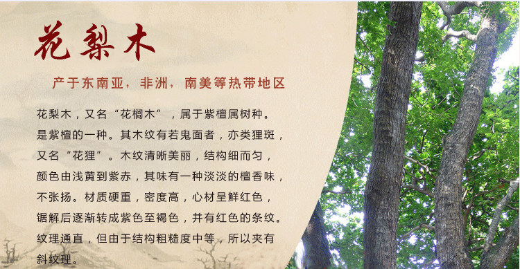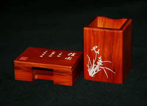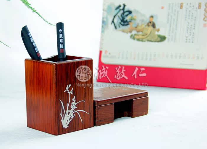 【基本信息】 产品材质:巴西花梨木 产品规格:笔筒:7*7*10CM 名片盒:11*7*4CM 产品包装:硬纸盒包装 【产品文化】 原经句内容: 君之视臣如手足,则臣视君如腹心;君之视臣如犬马,则臣视君如国人;君之视臣如土芥,则臣视君如寇仇。—— 语出《孟子离娄下》 白话易解:领导对待部属就似手足一样关爱,部属就会把领导当作可以推心置腹的长辈,而乐意效忠;如果领导把部属当作犬马,部属就会把领导看成陌路人,只是拿人薪水替人做事,生不起知恩图报的心;更有甚者,如果领导把部属视同泥土草芥,任意践踏,那么部属就会反抗,视领导如敌寇和仇人,伺机报复于他。孟子和齐宣王之间的这席谈话是对干群关系的精辟总结,对现代政府与企业管理具有很强的指导意义。 这款产品不仅适合管理者作为办公室用品使用,也适合下属和员工送给领导,页适合企业家之间的互赠礼品,祝福并帮助成就他们的一生! 这款产品比较适合教师或有志于弘扬优秀文化的人士使用。她可以不断提醒使用者不要偏离教育的本质,而片面注重分数和技能,避免教育出的学生有才无德,反而利用所学的技能做有害于社会国家的事情,从而教育出真正利国利民的德才兼备的人才!这样才能是功德无量的事业! 【产品材质说明】 巴西花梨以其纹理漂亮,板材宽且顺直,木质硬,适合雕刻,在广式家具中使用较多。用该材料做的大柜或者写字台等独板、独面比较多,深受 人们的喜欢。 巴西花梨生长于热带南美洲,属豆科植物。其木纹有若鬼面者,类似于黄花梨,所以被称为“巴西花梨”。其木质坚实,色彩鲜艳,纹理或 隐或现,不静不喧,质地温润,清晰美丽,木结花纹圆晕如钱。在漆饰后的弦面或近弦面上木射线明显,弦切面木射线斑纹亦明显。给人以文静、 柔和的感觉。可做家具及文房诸器。 该木材的物理性质:气干密度约为0.80-0.86g/cm3,木材具光泽,无特殊气味和滋味,纹理斜至交错,结构细而均匀。木材重,强度高。很少有 白蚁危害。 该木材为散孔材。心边材区别明显,心材黄褐至红褐色,边材白色至浅黄白色。生长轮略明显。管孔在放大镜下明晰,略小至中,单独及少数短径列复管孔(2—4个),管孔内常含深色沉积物,散生。轴向薄壁组织在放大镜下明晰,主为傍管状、翼状、聚翼状及轮界状。木射线非叠生,在放大镜下明晰,中至略密,甚细至略细。纹理直,常交错,结构细、均匀,干缩性大、握钉力良好,干燥略快,不易开裂、翘曲。综合评价优 于缅甸花梨。 |
