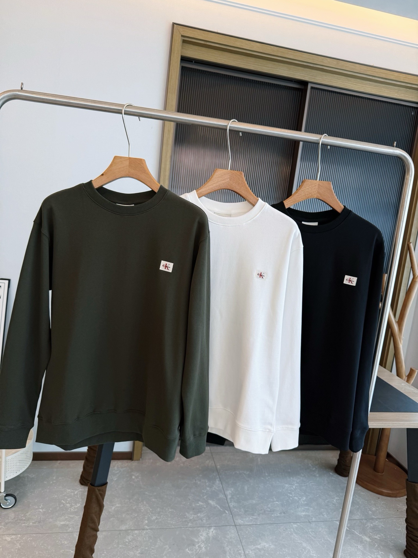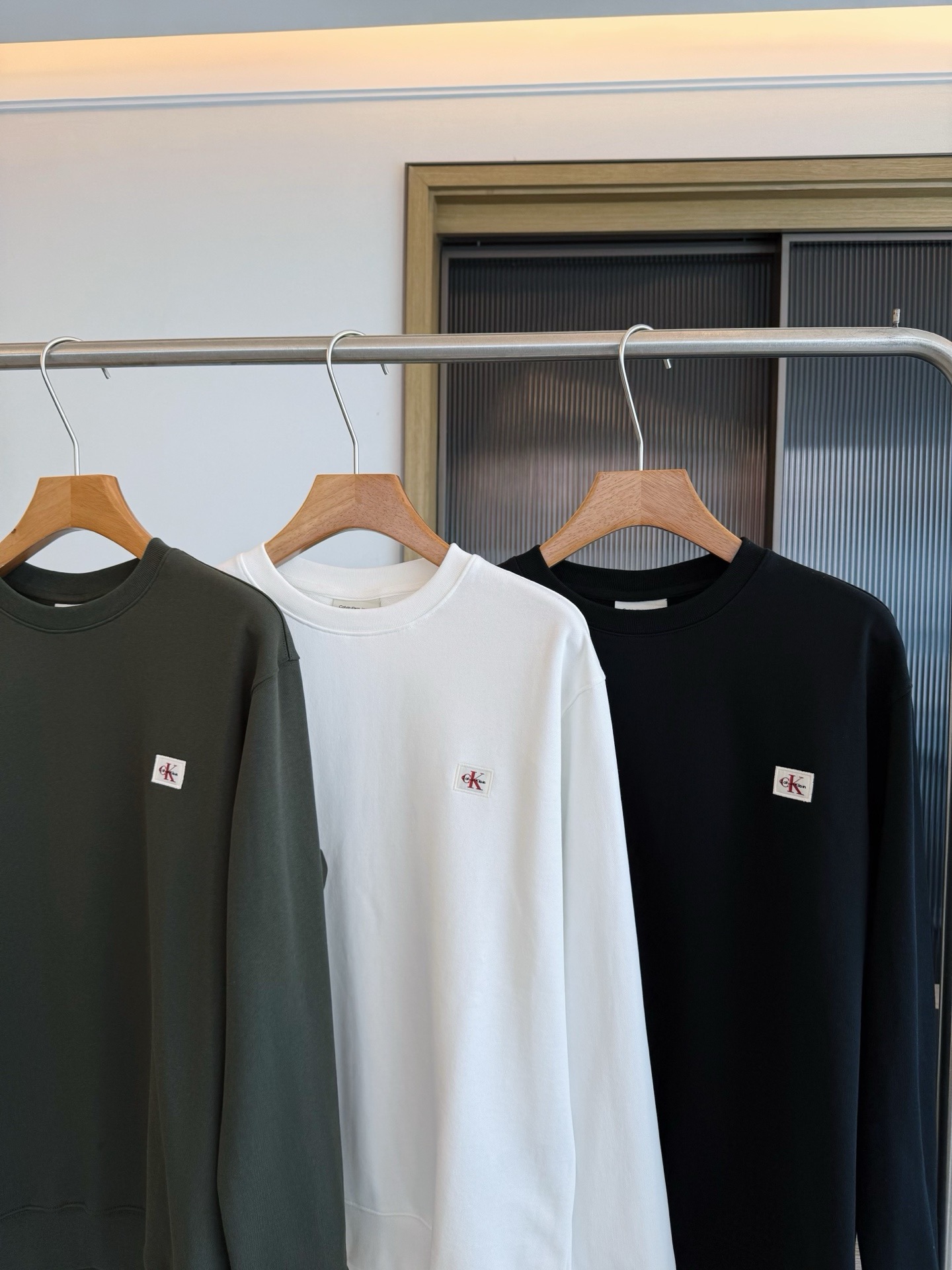 毒家,CK Jeans25秋季新款男士休闲通勤字母贴 布绣圆领针织卫衣长袖 贴布卫衣