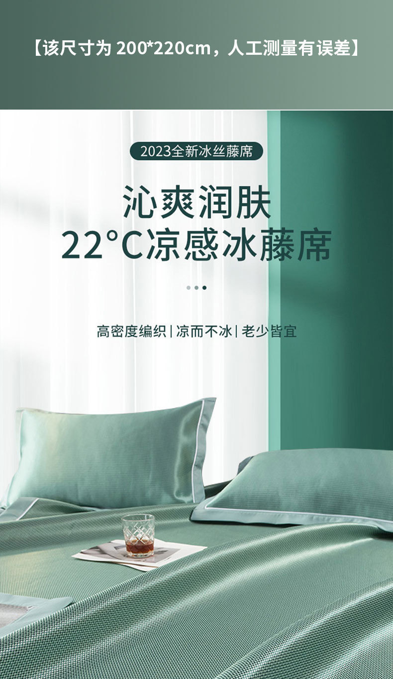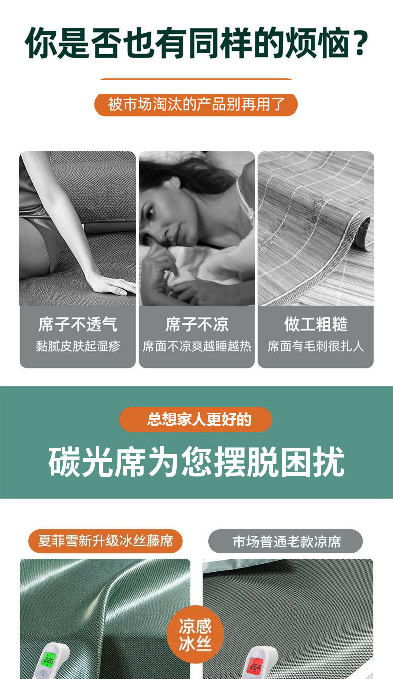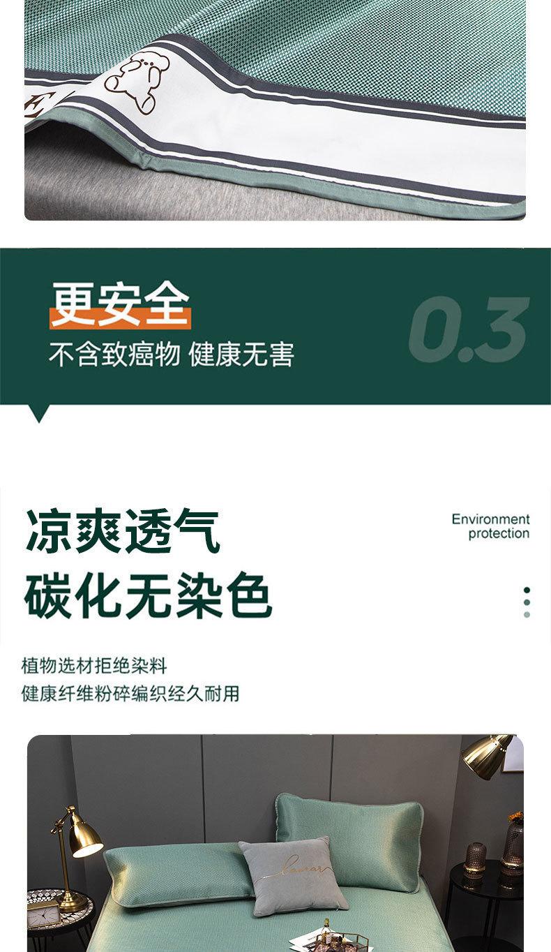 【沁爽润肤❗️夏季碳光冰丝凉席】降温冰丝面料,自适应恒温,凉而不冰!夏季床笠抗jun可机洗夏天冰藤席空调软席子三件套L
