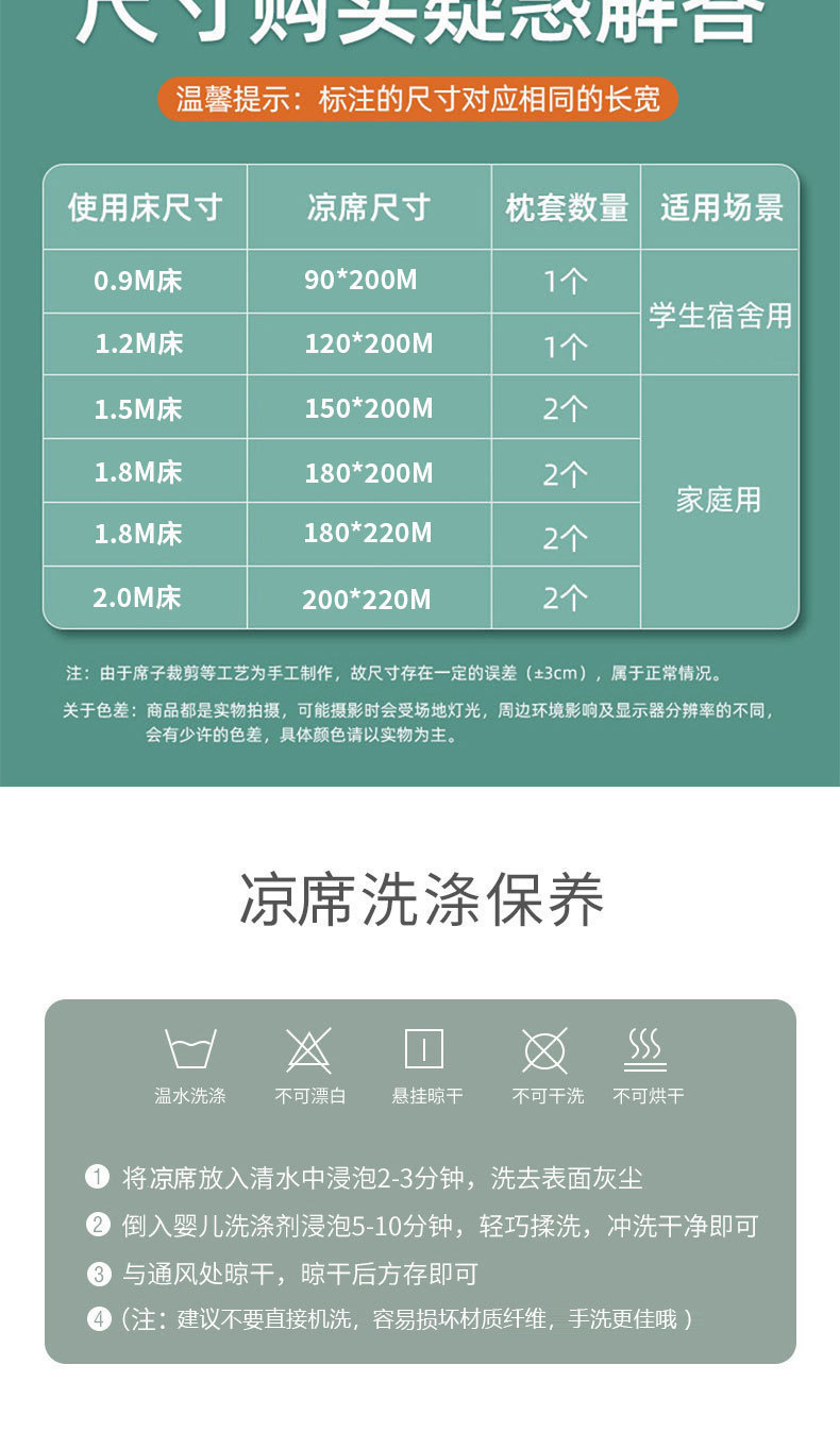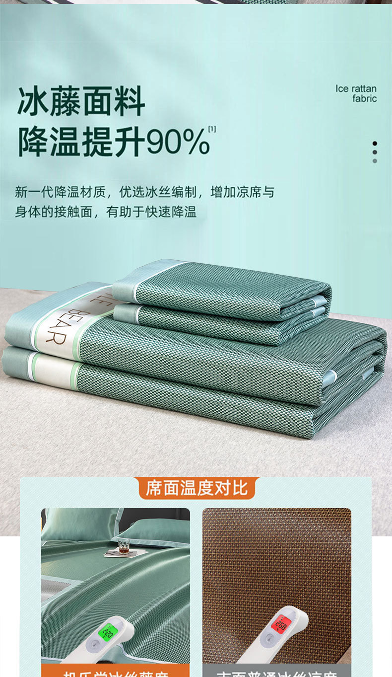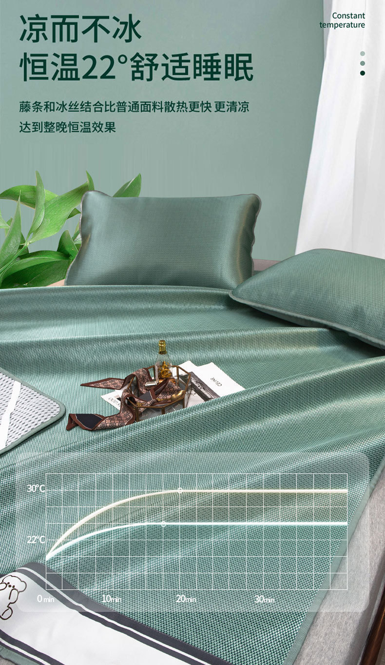 【沁爽润肤❗️夏季碳光冰丝凉席】降温冰丝面料,自适应恒温,凉而不冰!夏季床笠抗jun可机洗夏天冰藤席空调软席子三件套L