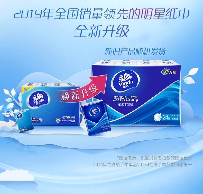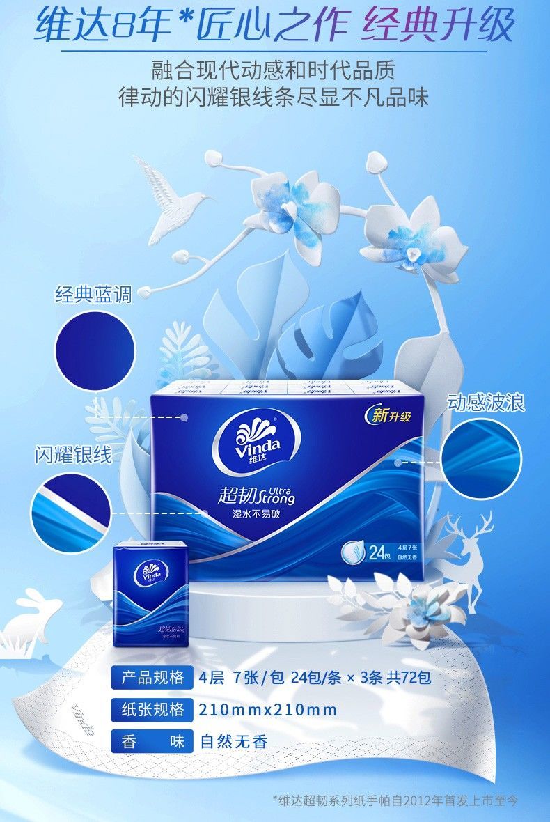 维达V0169超韧纸手帕4层24包装(自然无香)/条 4层7片/包 12T/箱