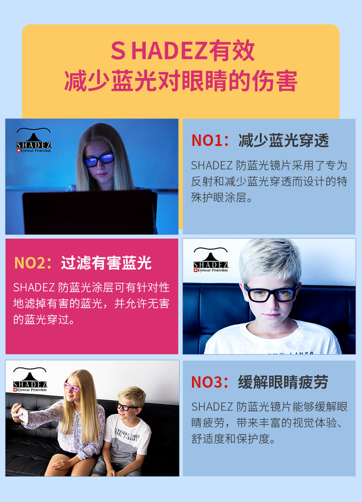 瑞士shadez防蓝光眼镜手机电脑屏幕防护镜 成人、儿童、青少年防辐射护目镜 | 新西兰拼邮