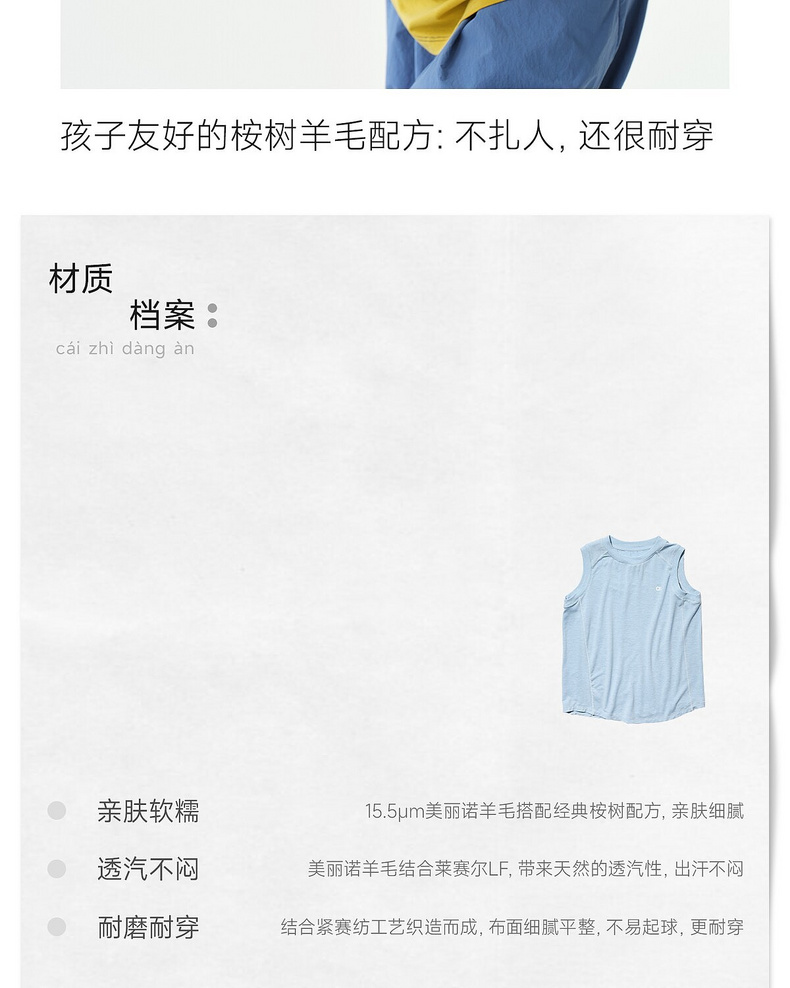 【夏Vol.2】allblu幼岚【桉树羊毛】儿童背心26夏季新款男童女童A类透气不闷ZY