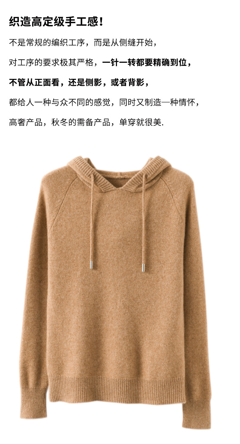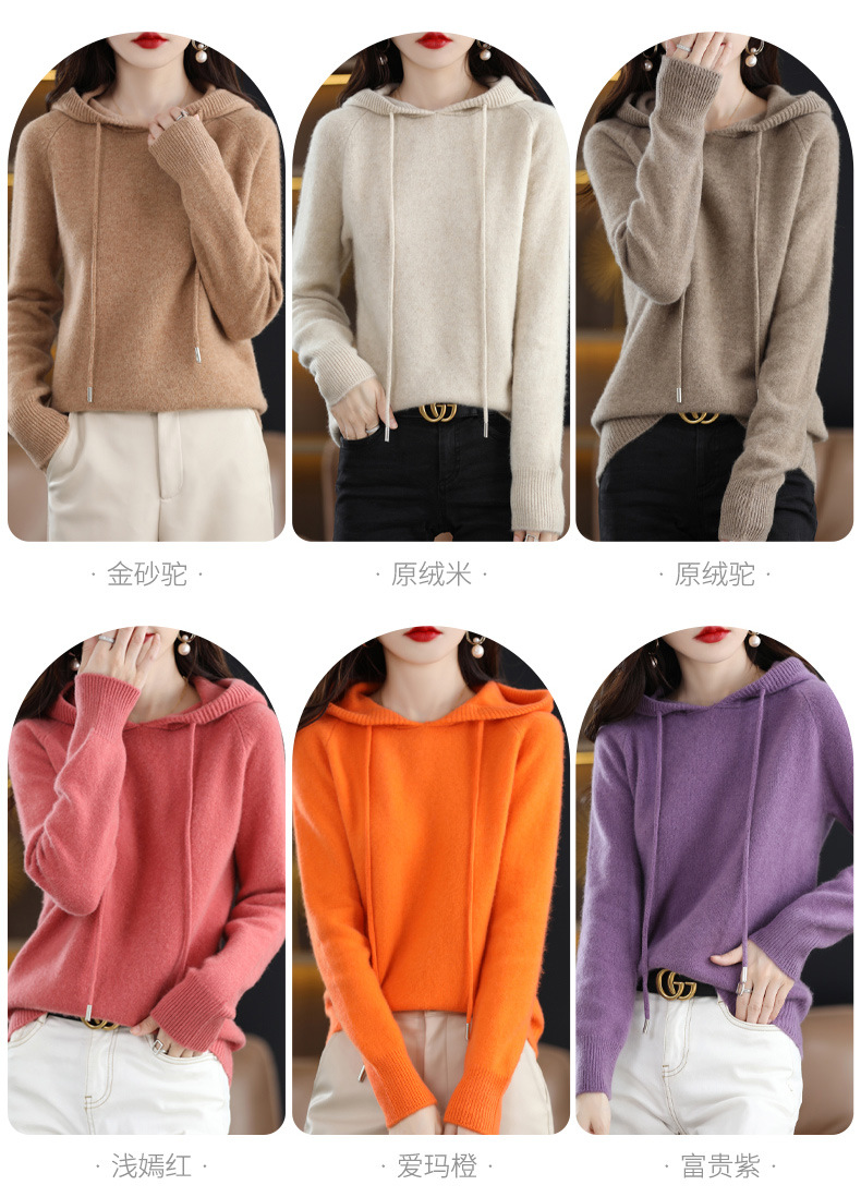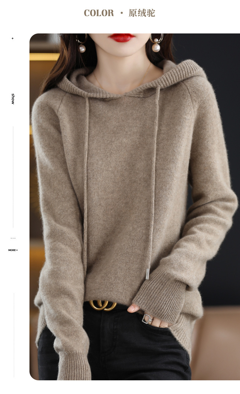 秋冬新款连帽卫衣女羊毛针织衫外穿女士上衣宽松毛衣外套女装