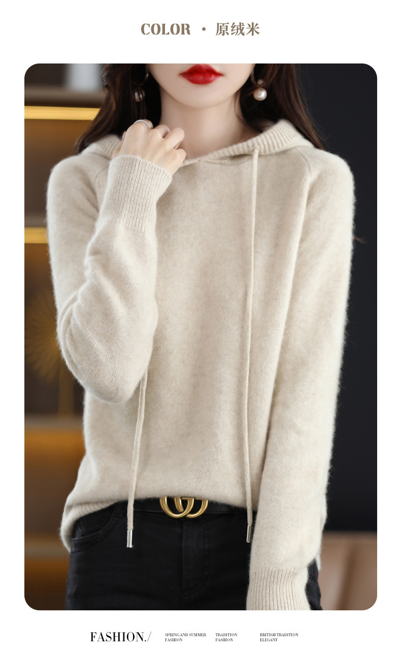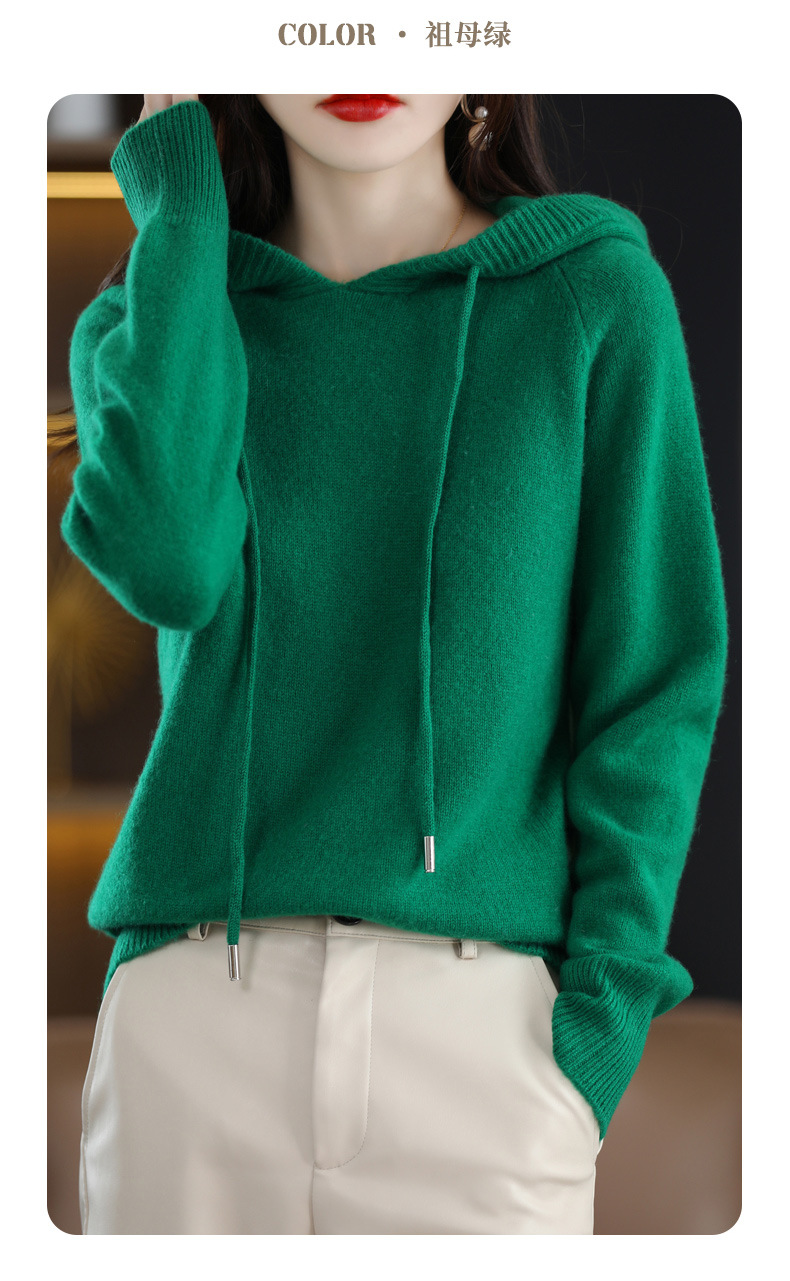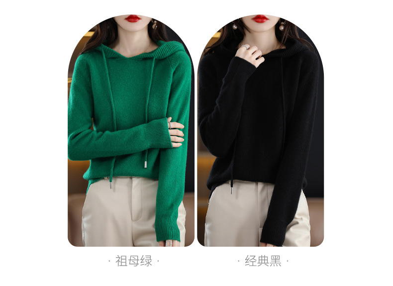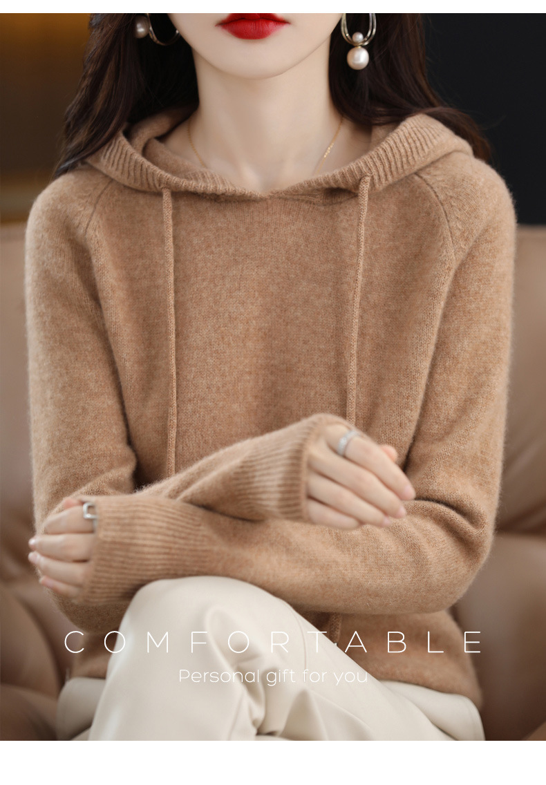 秋冬新款连帽卫衣女羊毛针织衫外穿女士上衣宽松毛衣外套女装