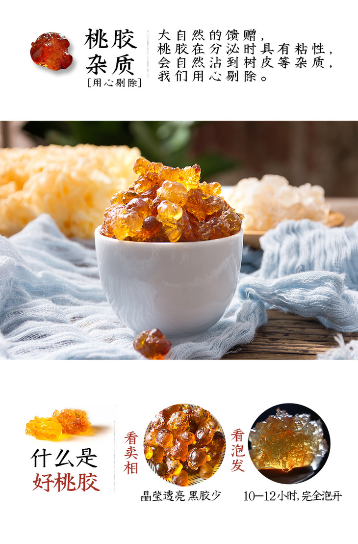 晶莹饱满易泡发桃胶【燕之坊】金琥珀桃胶200g 胶质充盈 圆润饱满 易清洗 易泡发
