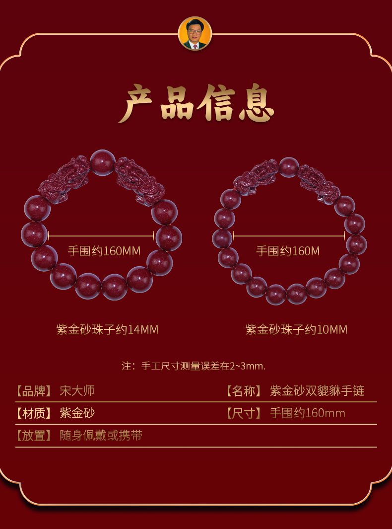 宋韶光大师新款 紫金砂双貔貅朱砂手链男女款情侣饰物