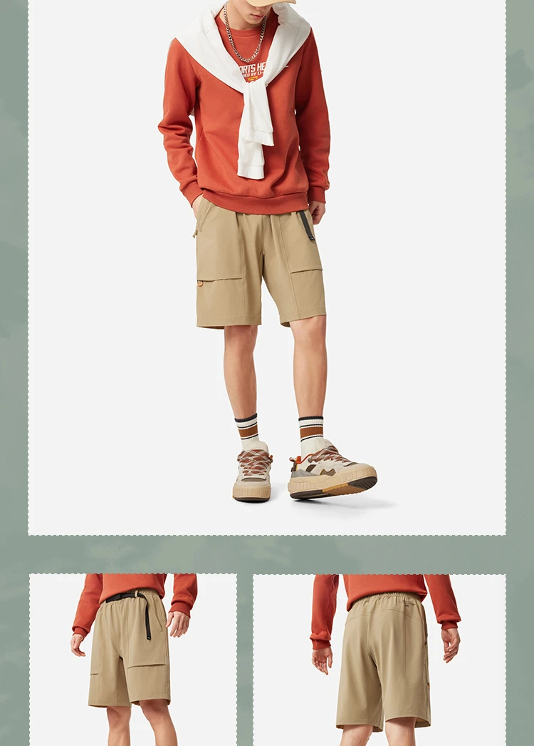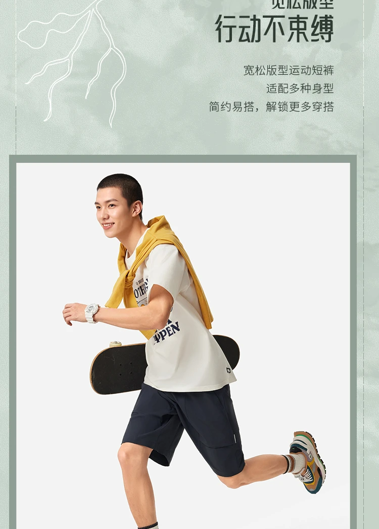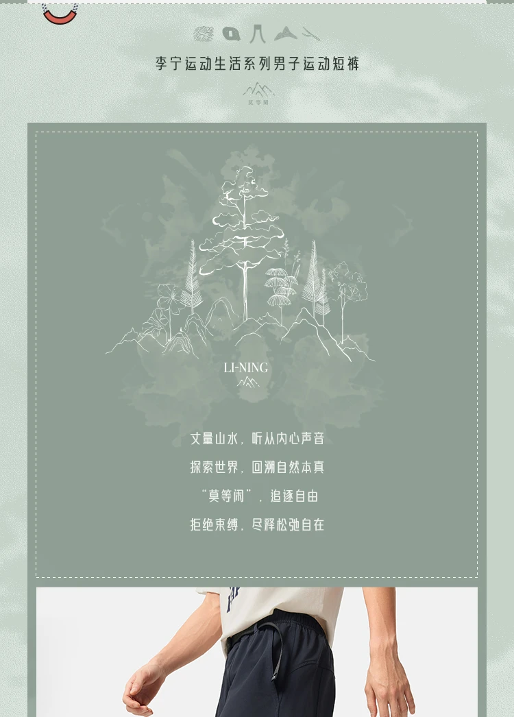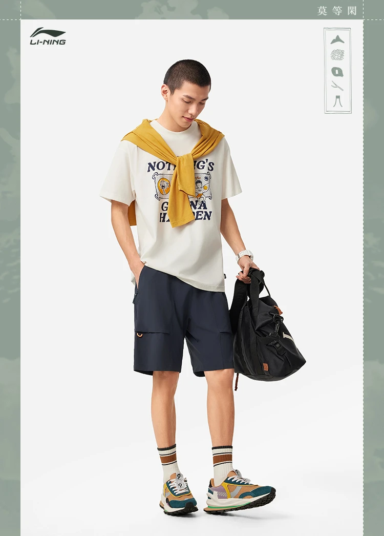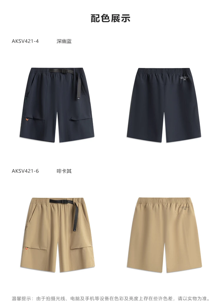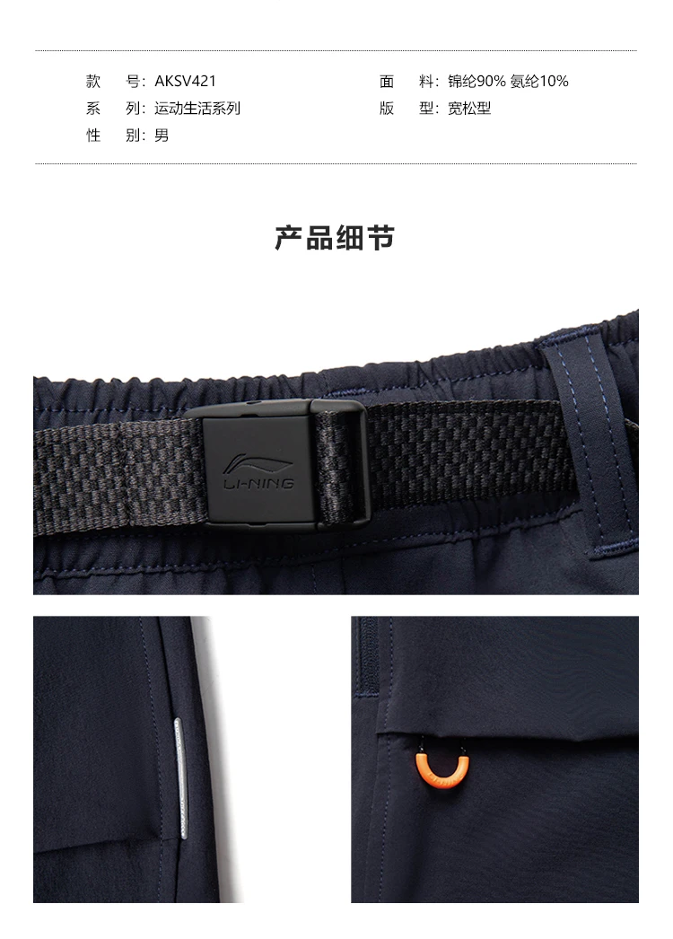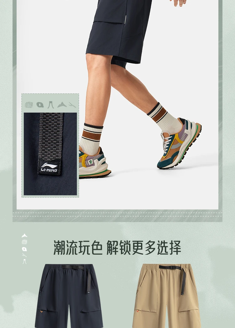 李宁男子反光冰感舒适防晒宽松工装多袋短裤运动短裤AKSV421