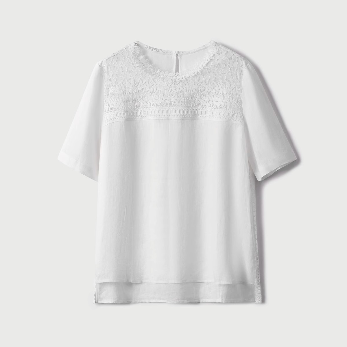 产品名:圆领蕾丝拼接短袖小众设计感衬衣