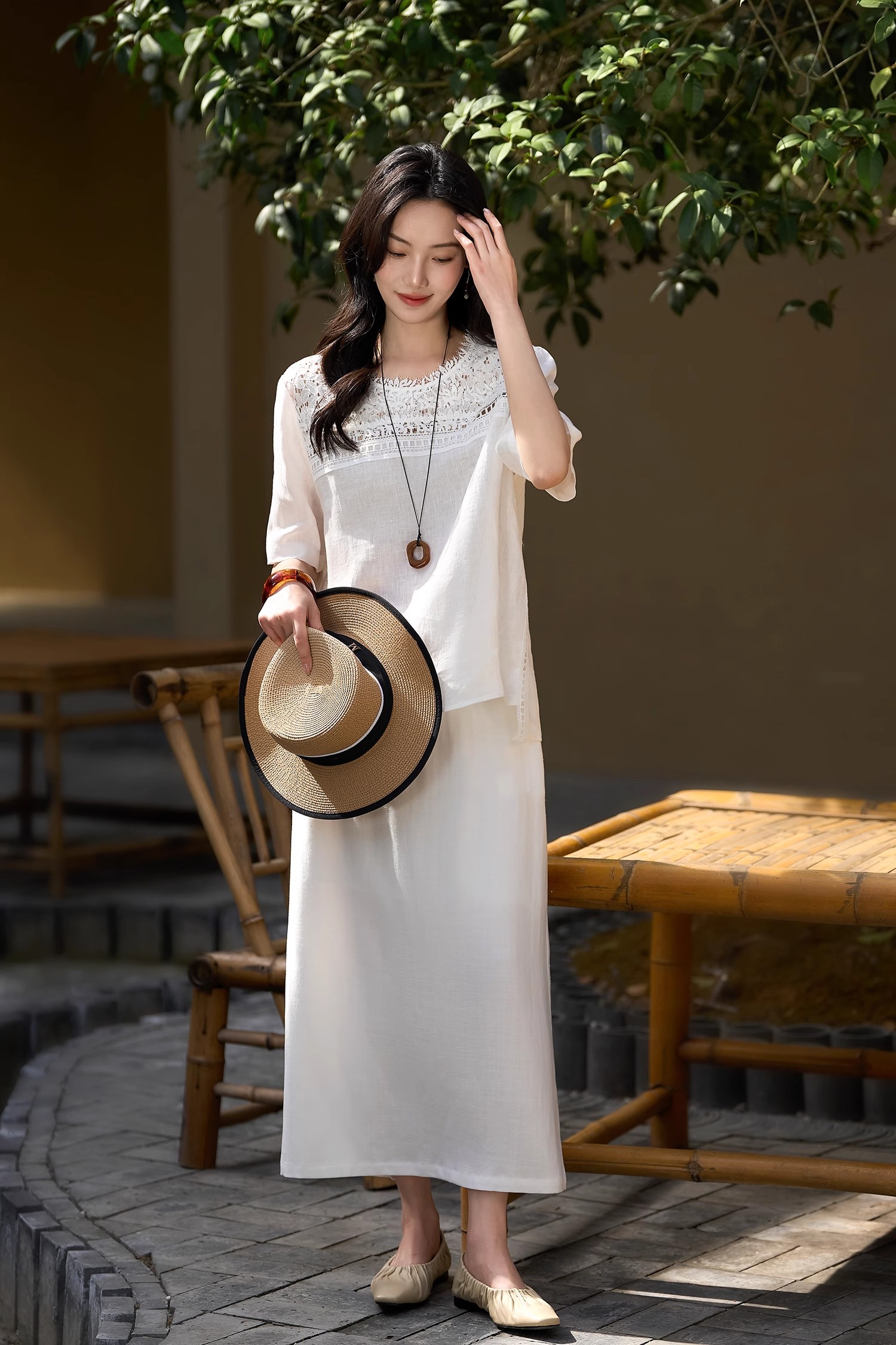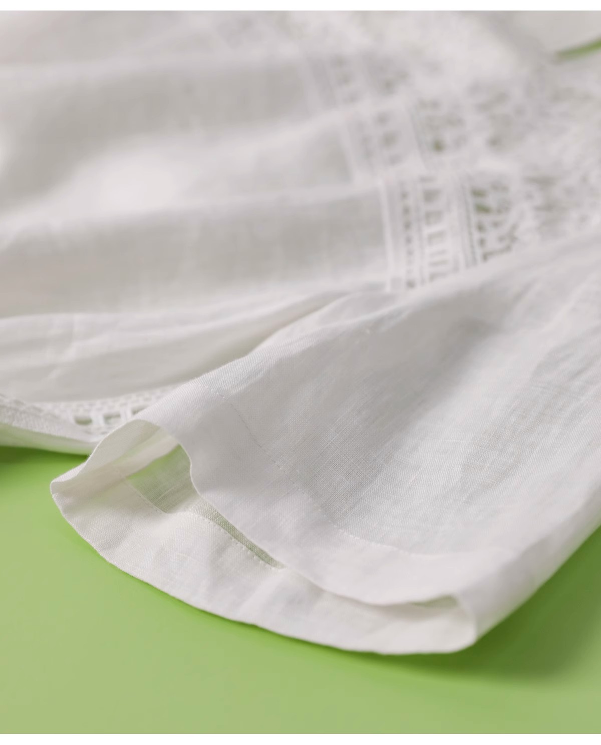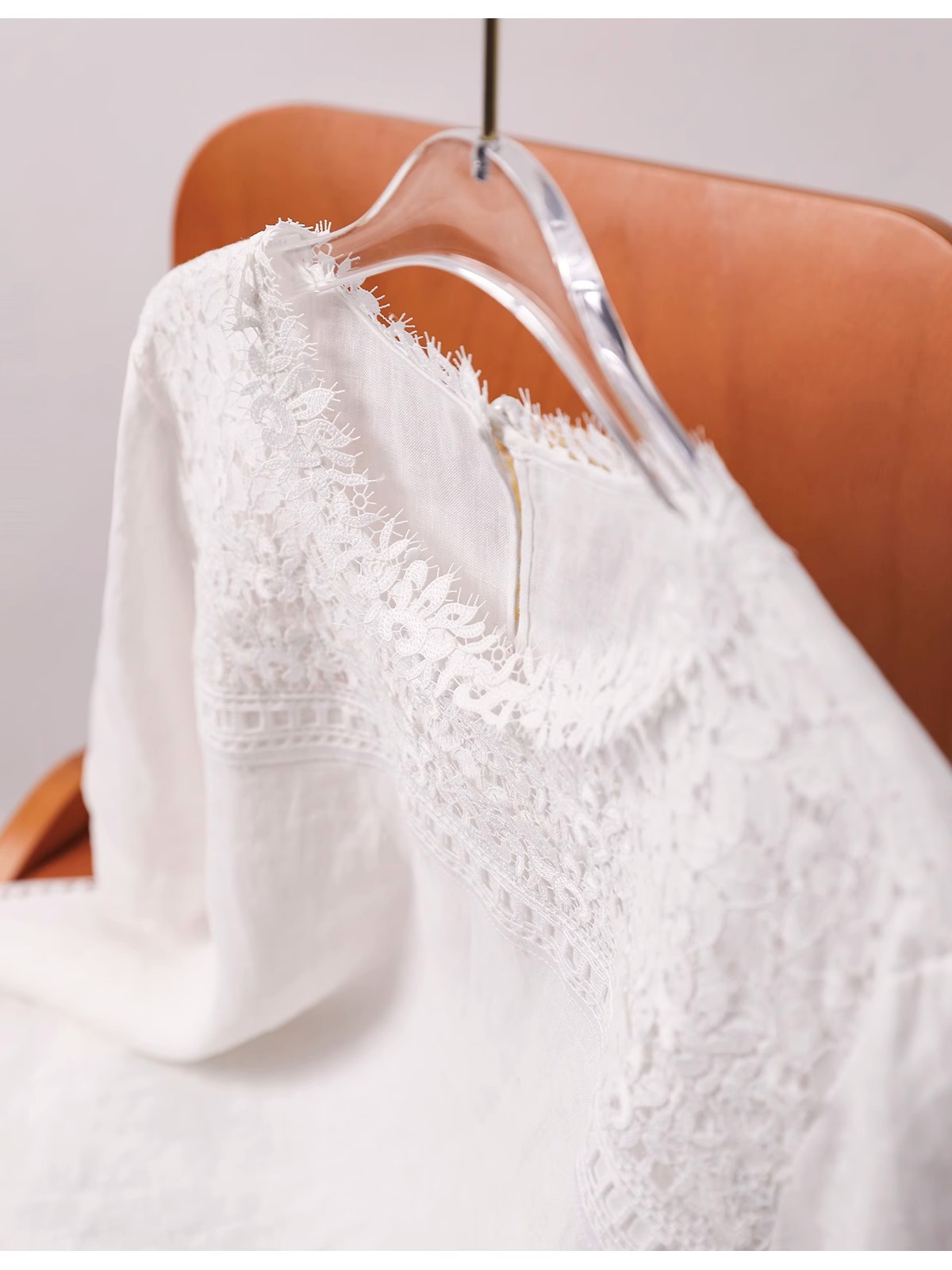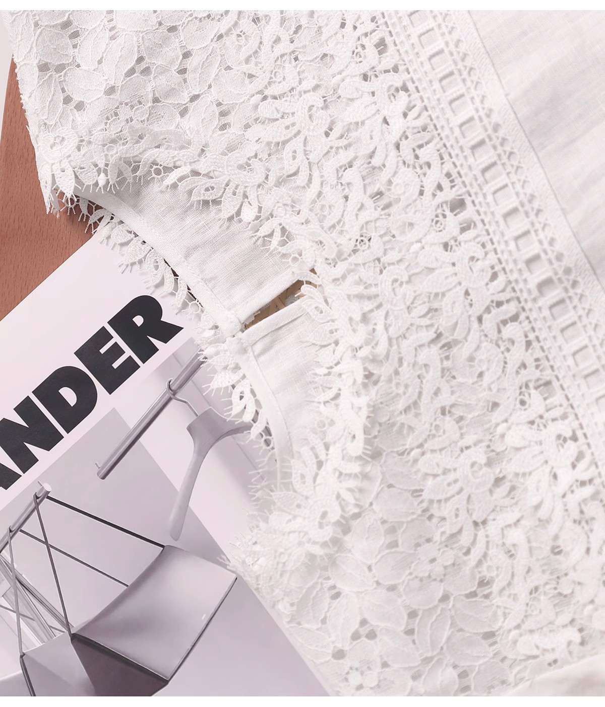 【夏日白月光!这件蕾丝衬衣把清冷感焊在身上】法式复古圆领蕾丝拼接短袖小众设计感上衣