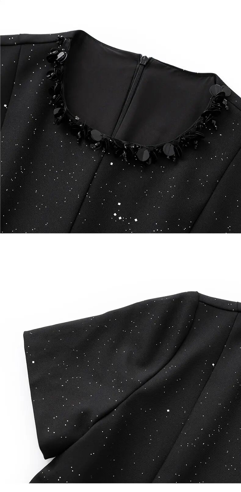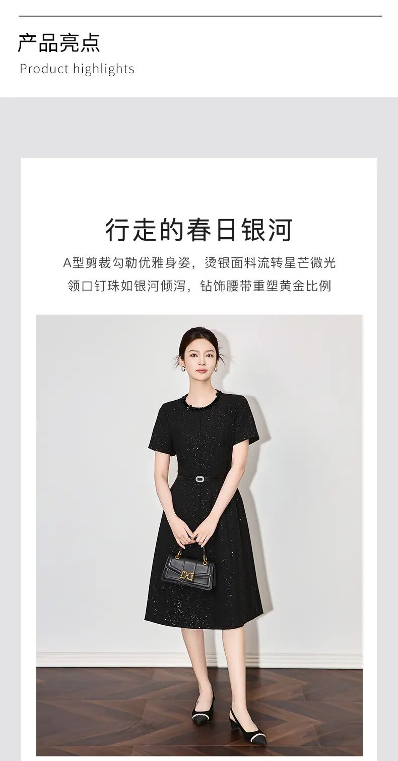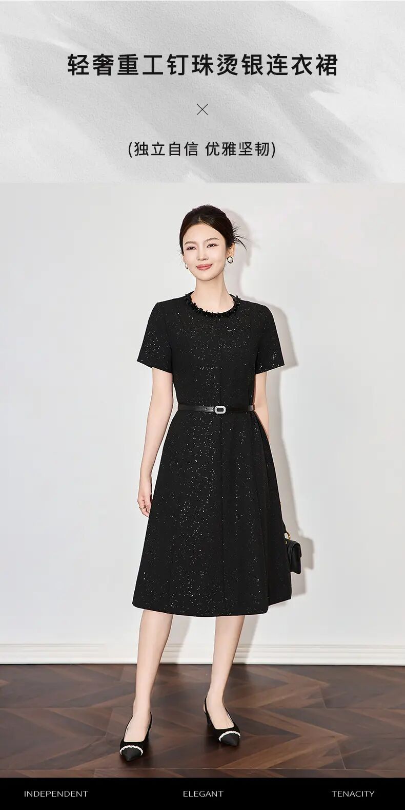 【高货wl】全新升级【铂金会员349/天猫469/差价120】(05824) 洛诗琳雅致重工钉珠亮片烫银时尚名媛气质女春款连衣裙