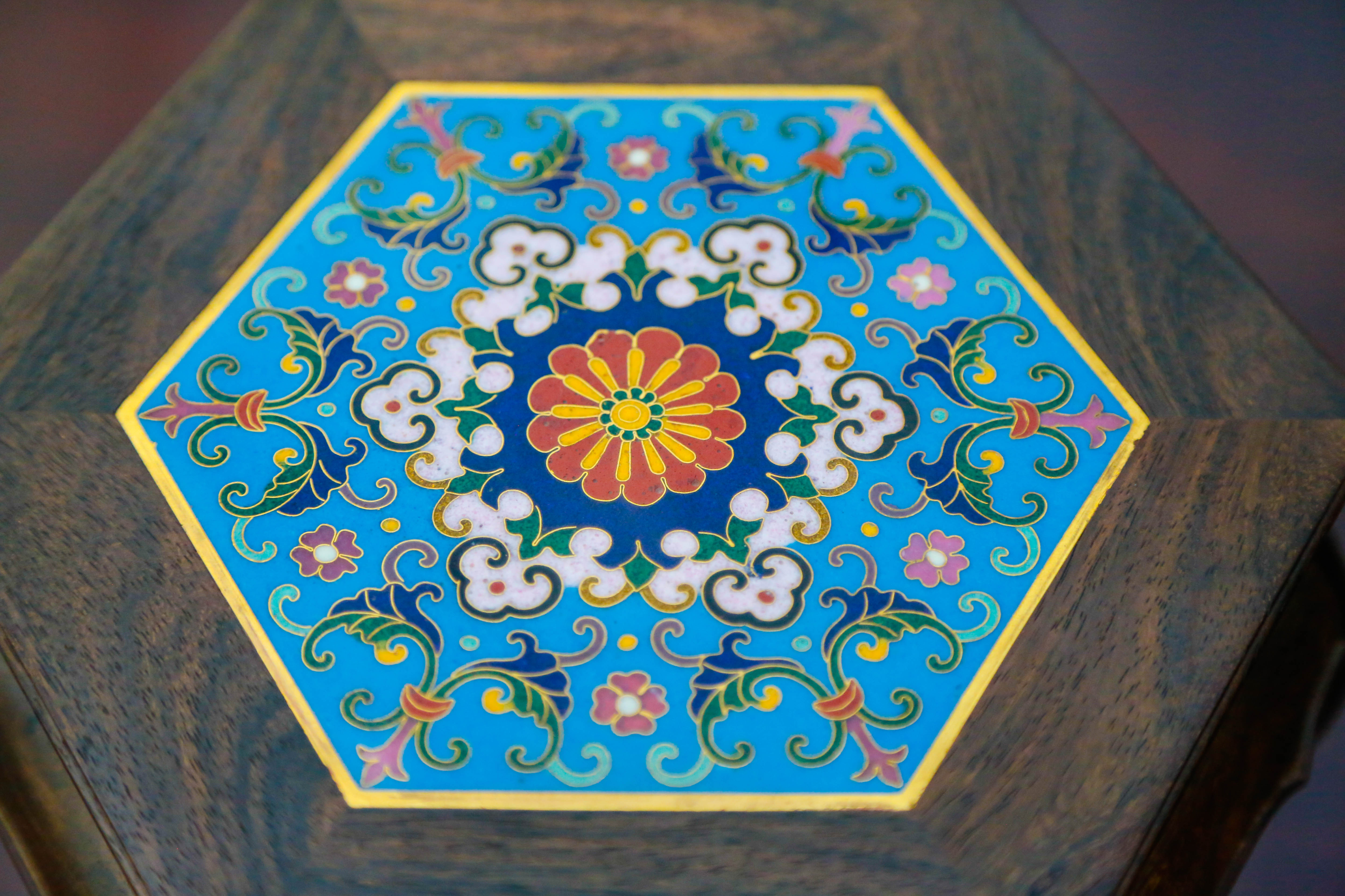 「小叶紫檀」八角紫檀座几(景泰蓝)