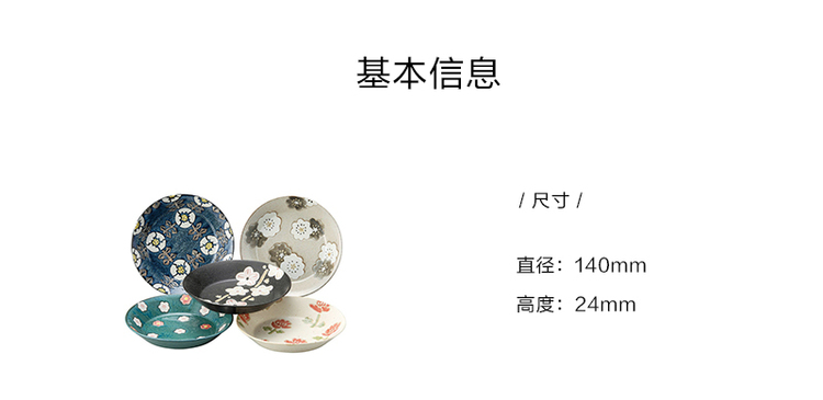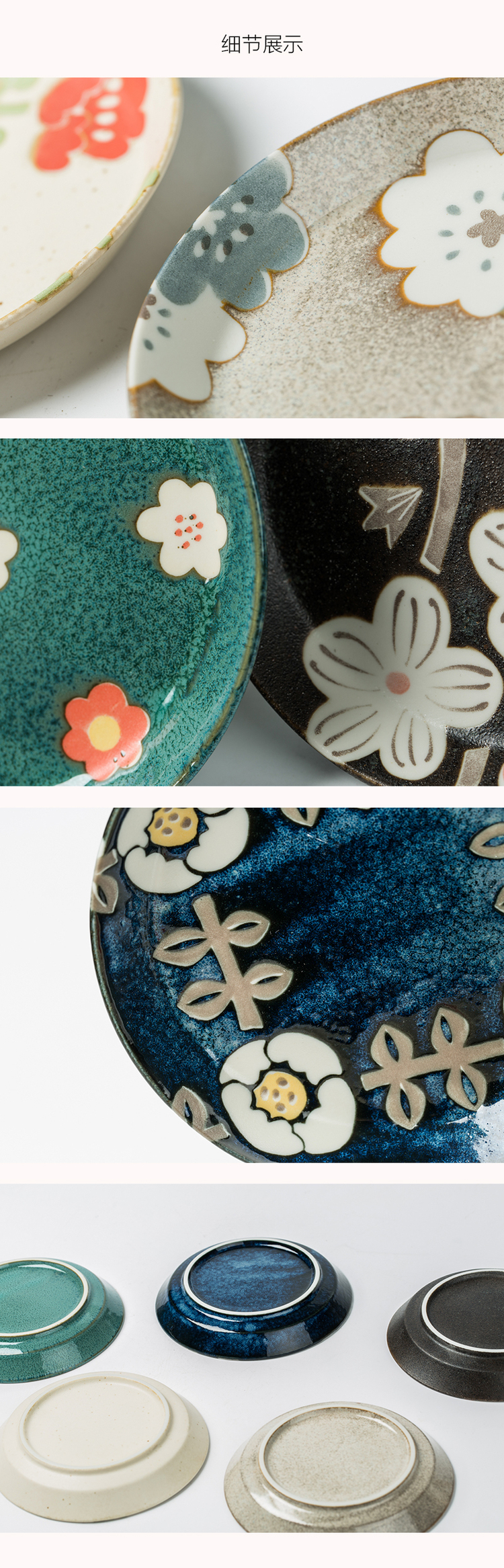 【AITO】日本原产 美浓烧Nordic Flower陶瓷盘点心碟5件套装