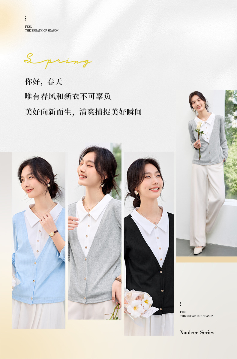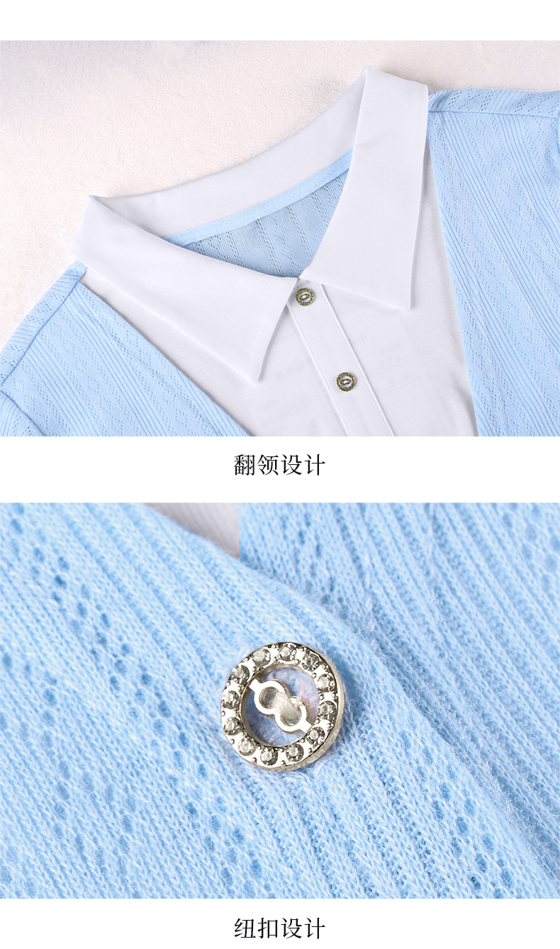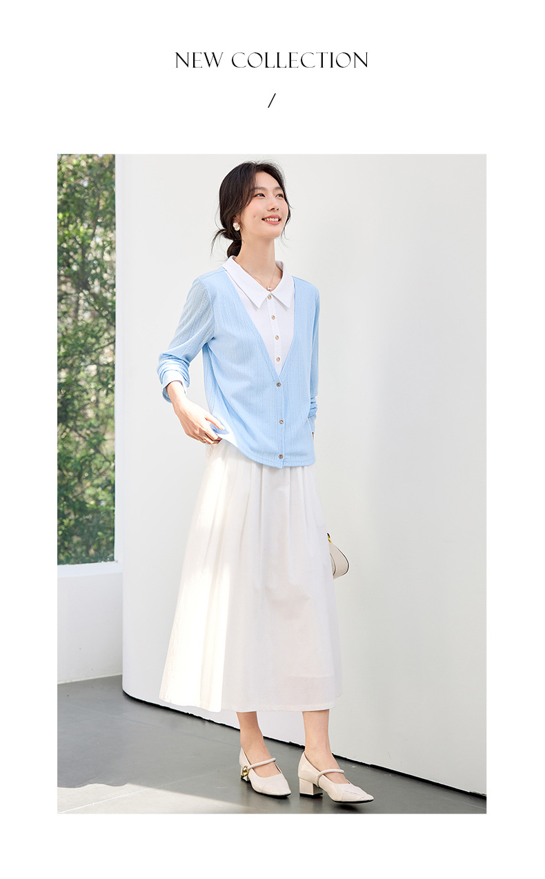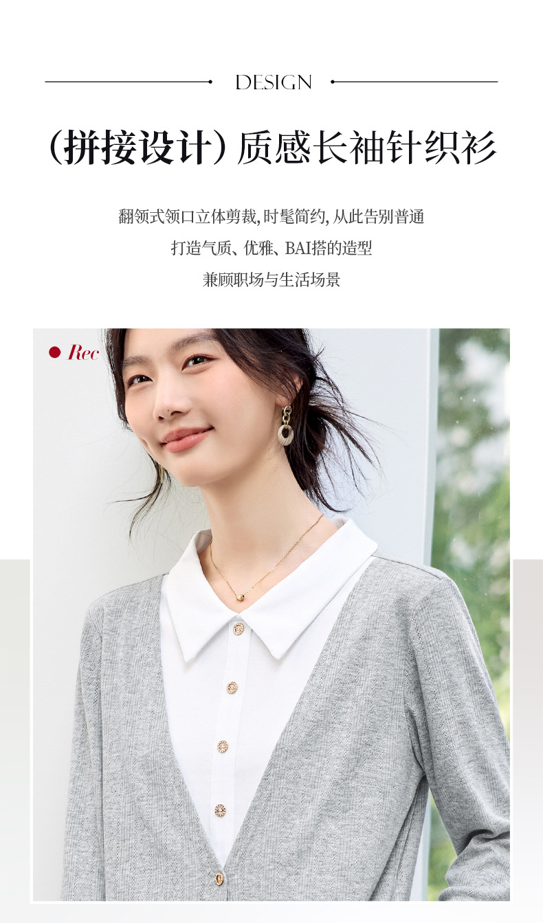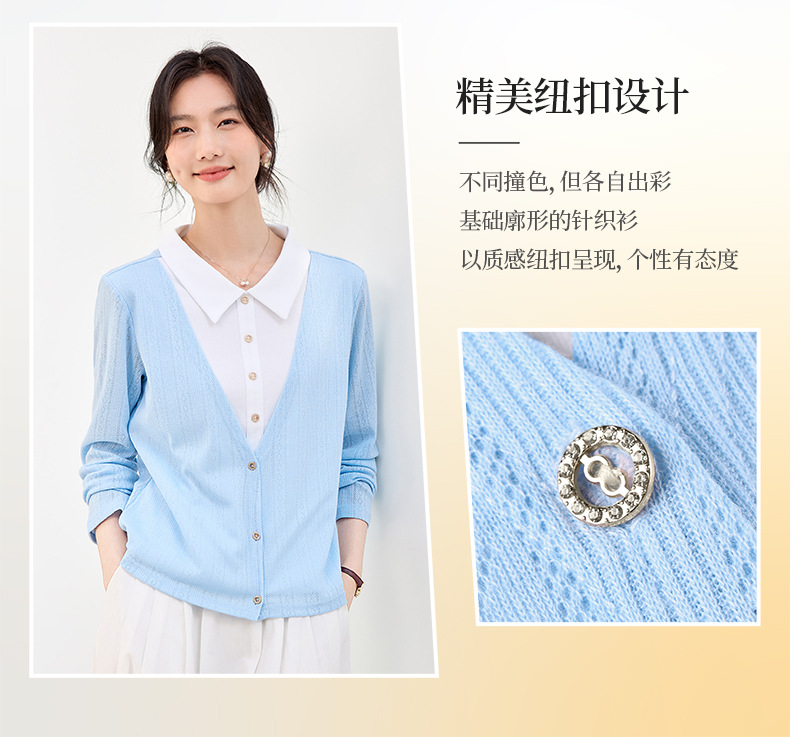 丁摩 【撞色天鹅衫】新款美雅碧棉v领假两件撞色针织开衫打底衫上4ZF-120902