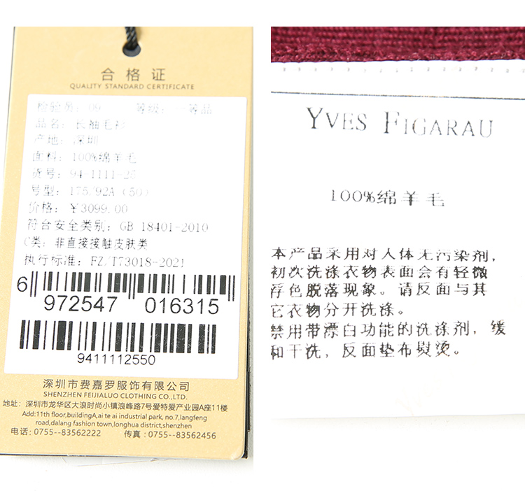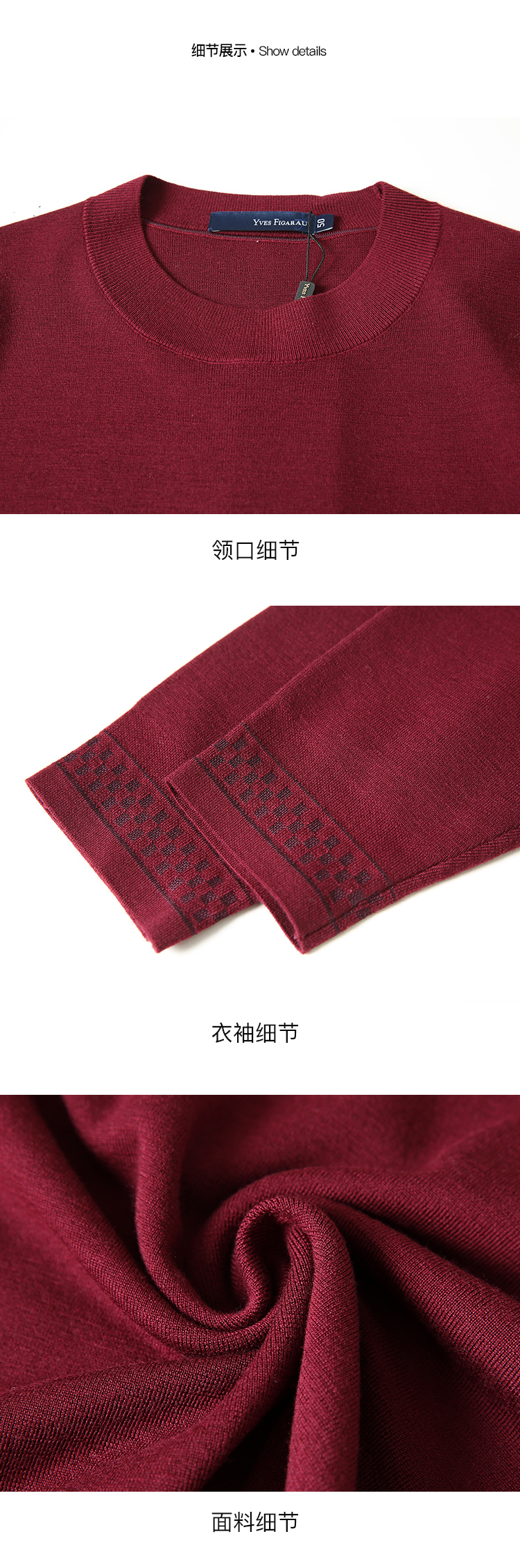 YvesFigarau伊夫·费嘉罗秋冬新款100%绵羊毛休闲长袖毛衫941111