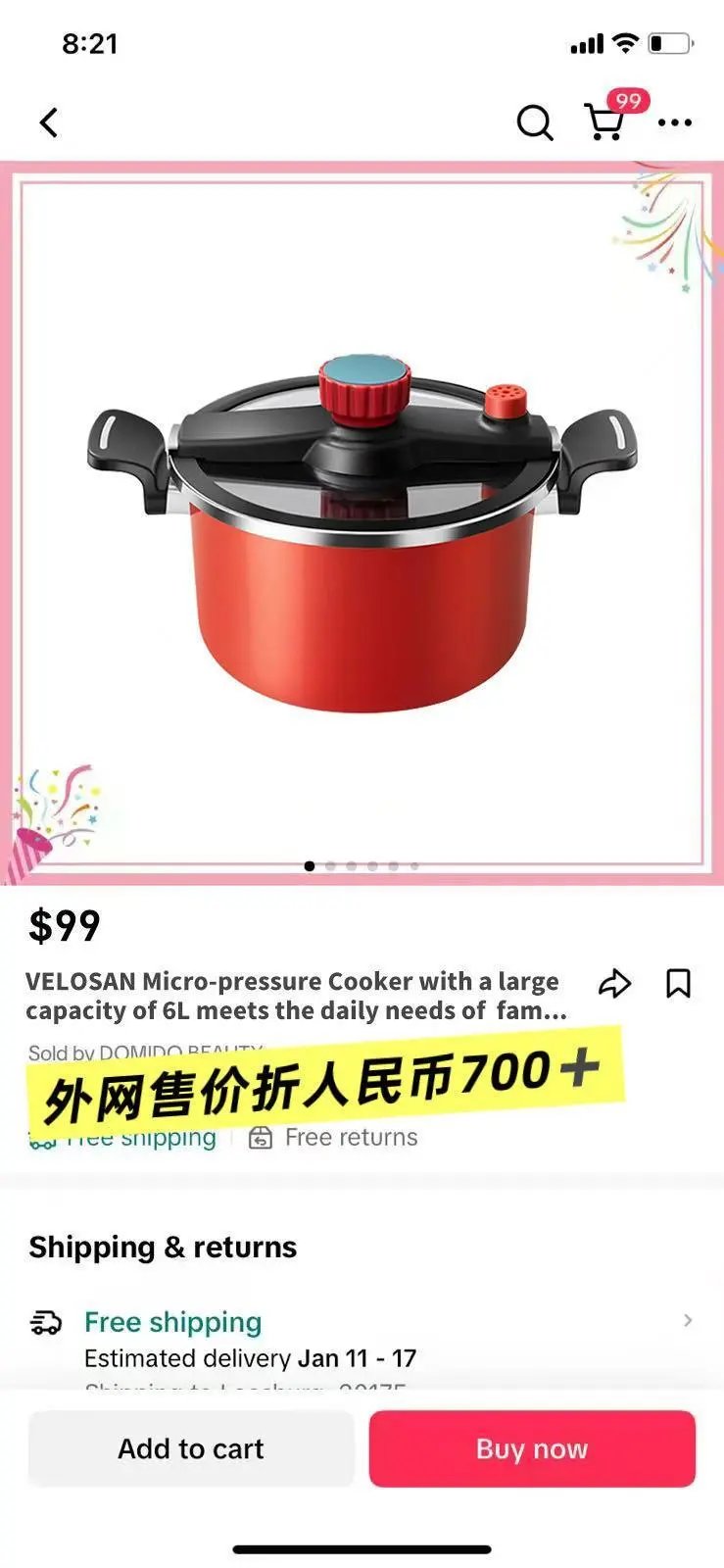 99美金,折合人民币是700+