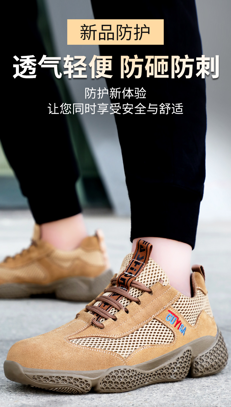 劳保鞋男夏季透气安全工作鞋钢包头防砸防刺穿功能鞋橡胶大底运动休闲鞋轻便透气舒适防护功能鞋