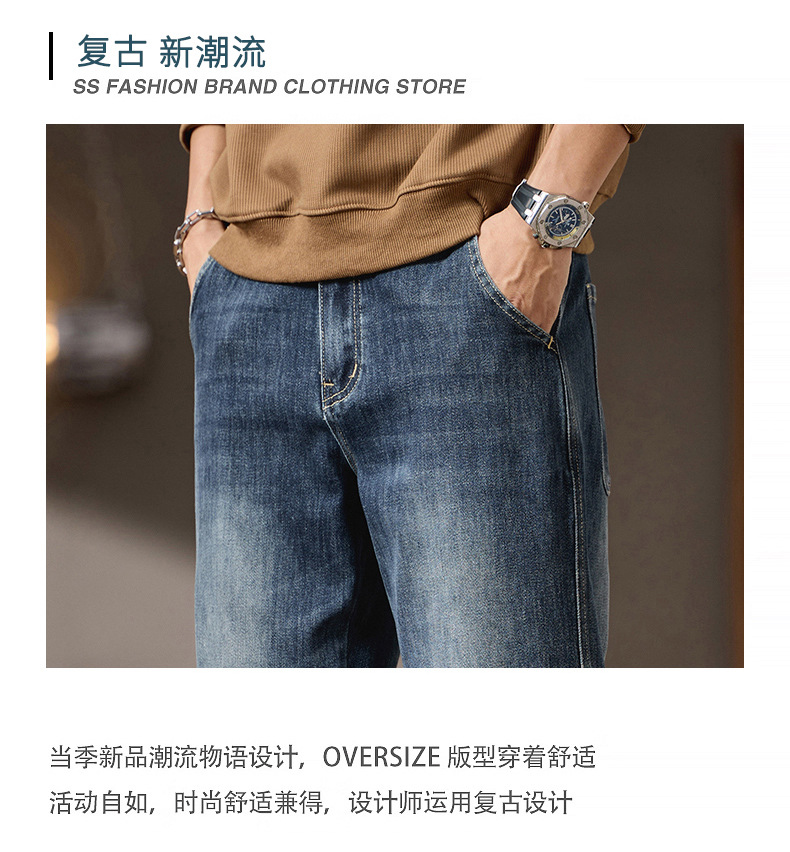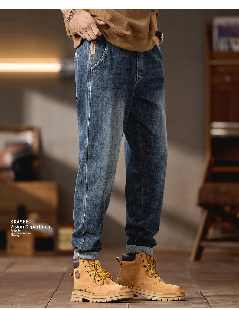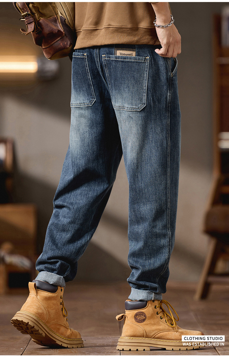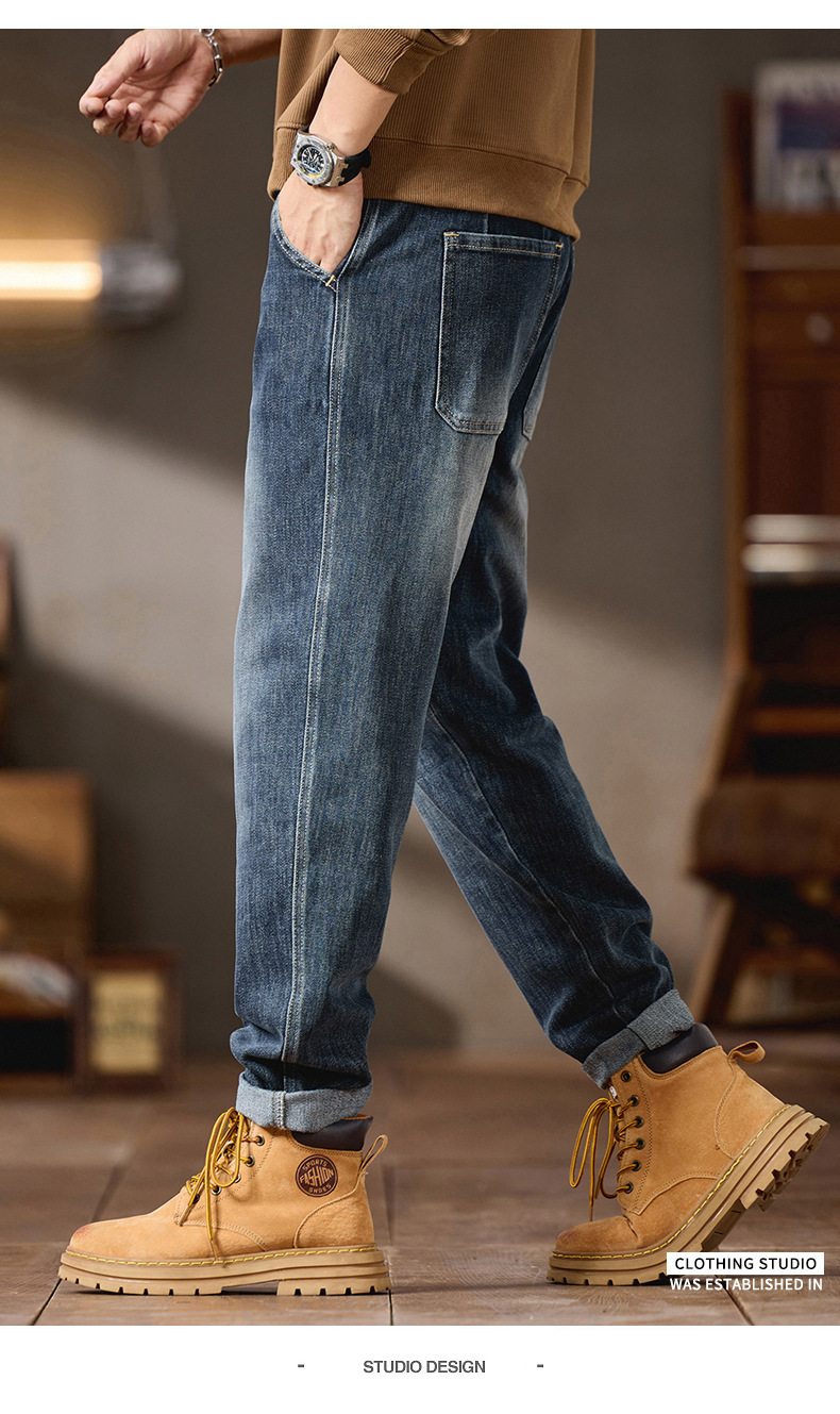 【DQ】大依优型大码男装潮流微锥复古牛仔裤男宽松弹力松紧腰小脚长裤