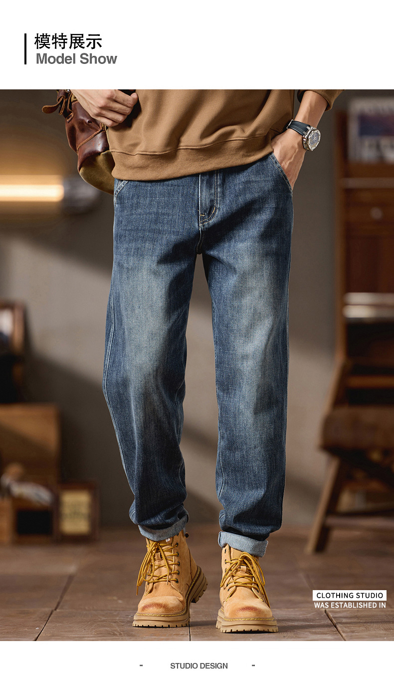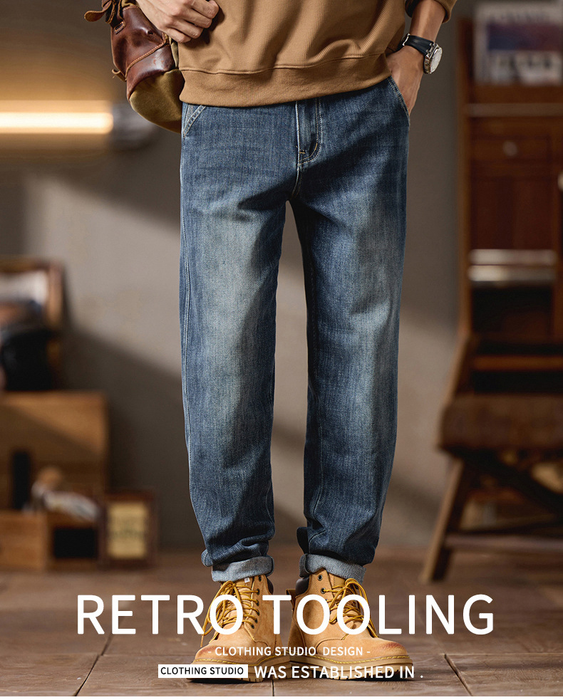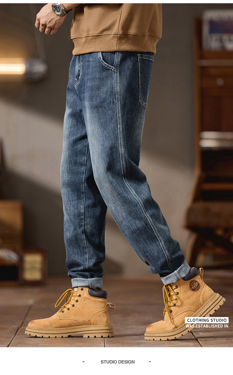 【DQ】大依优型大码男装潮流微锥复古牛仔裤男宽松弹力松紧腰小脚长裤