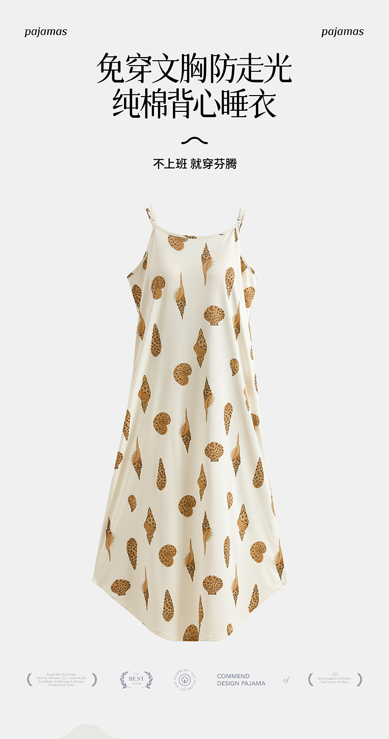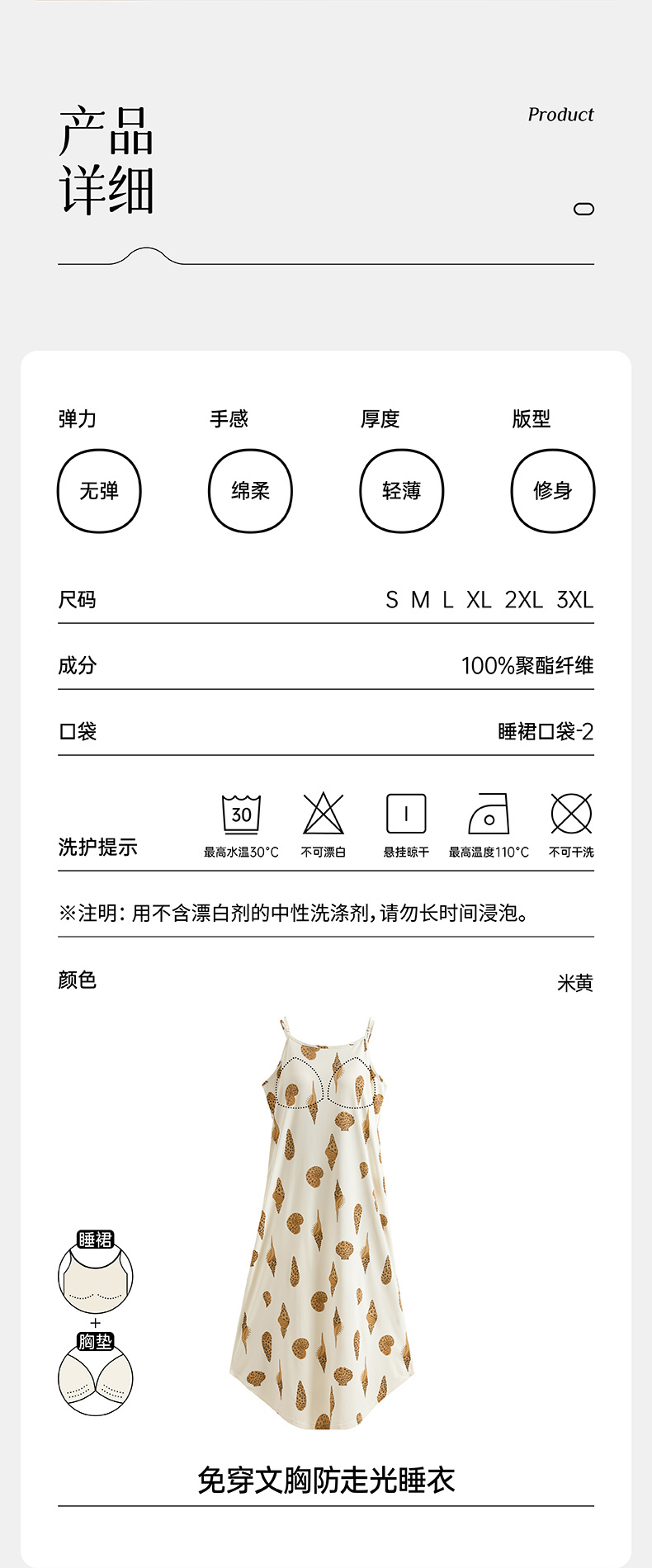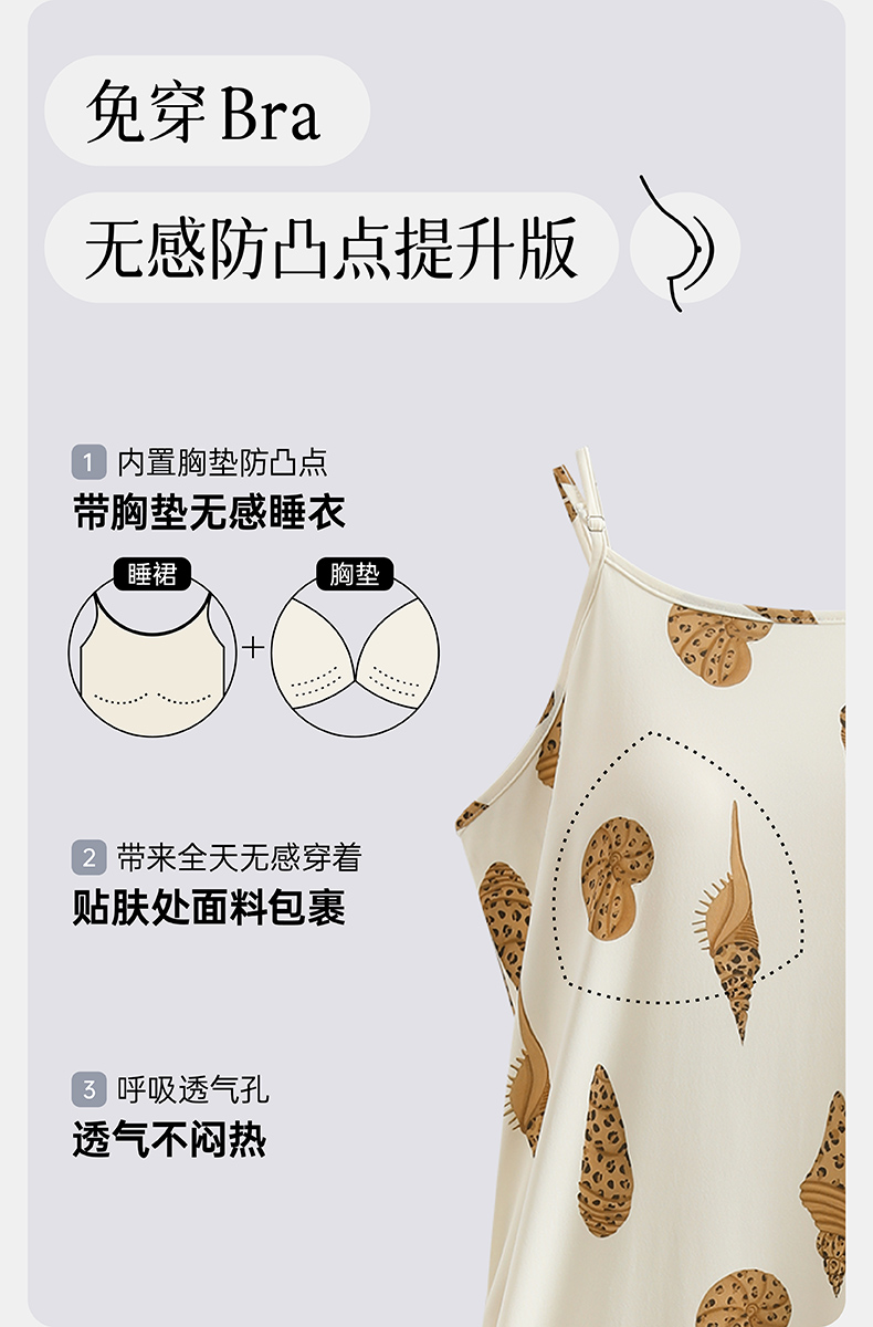 芬腾【带胸垫】防凸点睡裙女款夏冰丝薄款睡衣休闲大码凉感连衣裙子