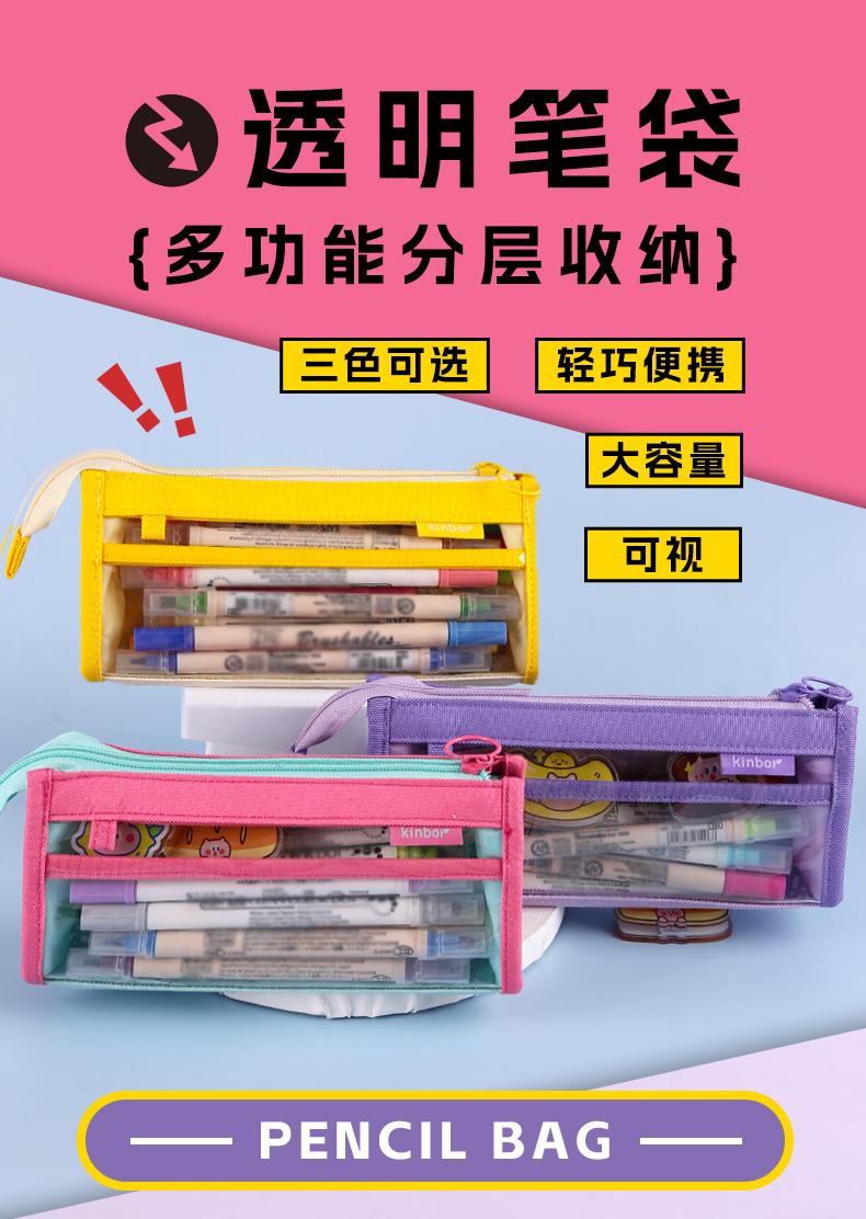【广博】kinbor多巴胺笔袋三层大容量透明笔袋铅笔盒高颜值简约文具盒