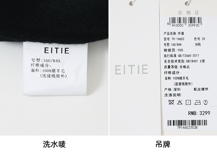 EITIE爱特爱冬季新款高级感气质收腰显瘦毛呢大衣外套7914602
