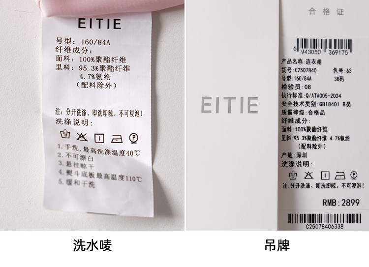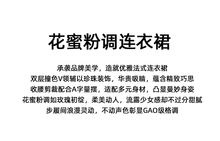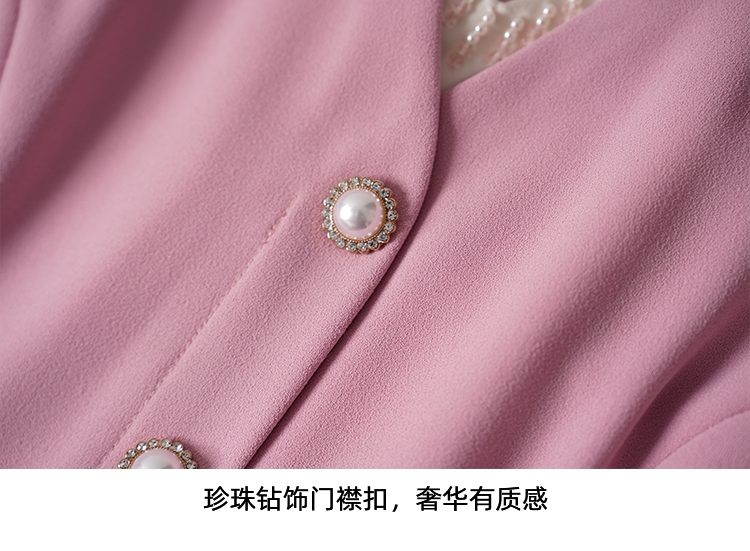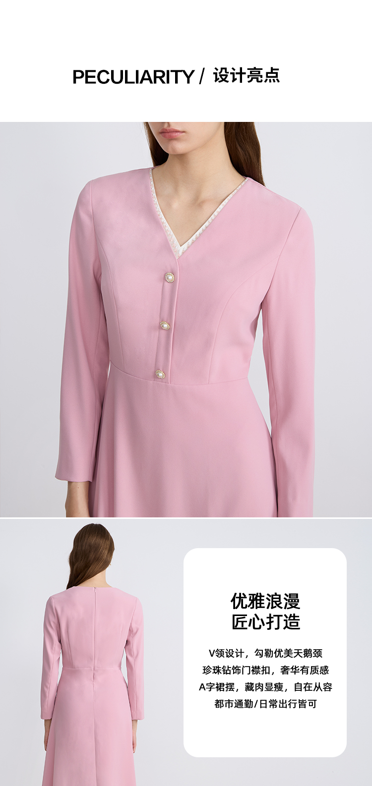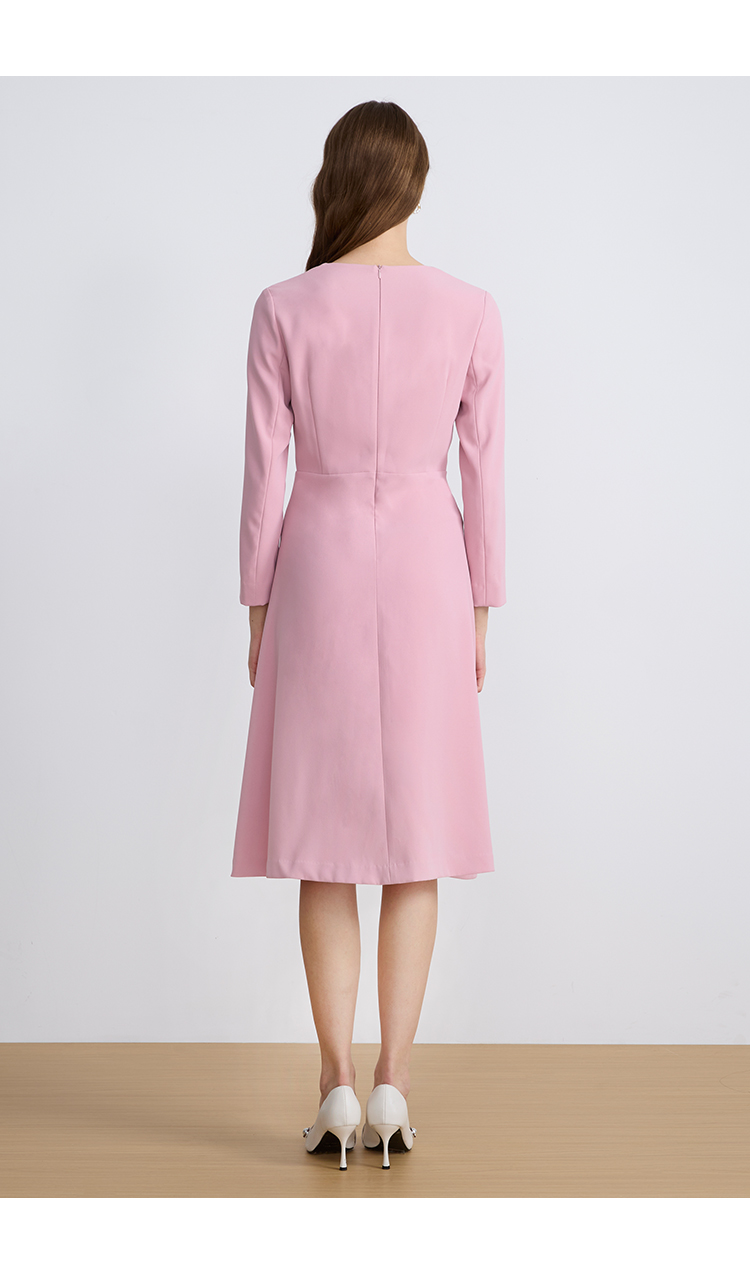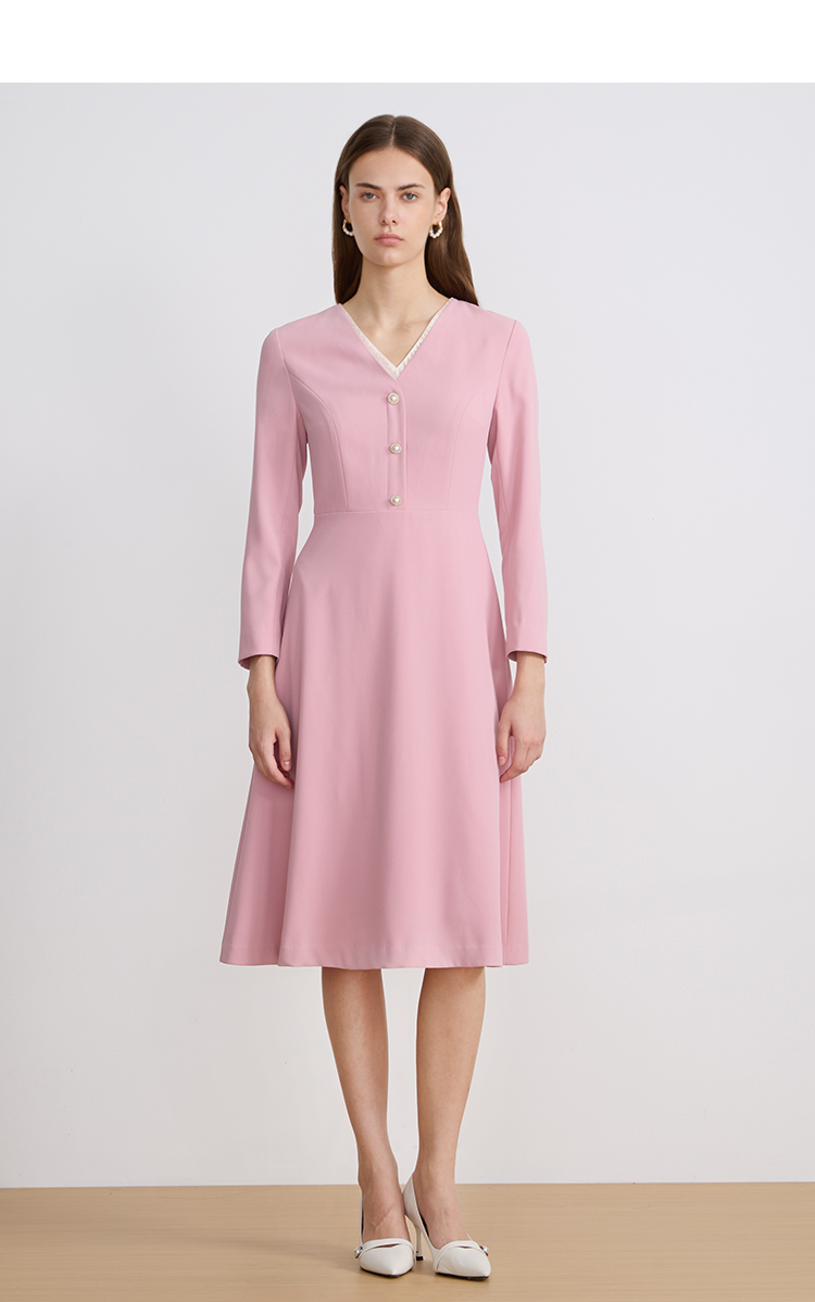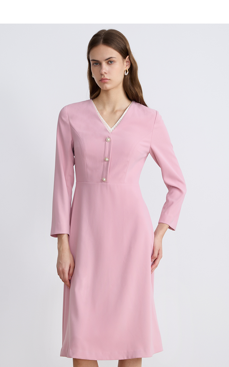 EITIEEITIE爱特爱法式气质优雅V领撞色收腰粉色长袖秋季新款连衣裙C2507840
