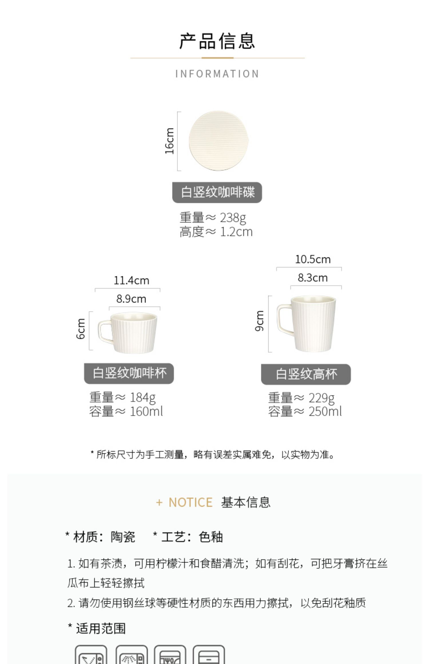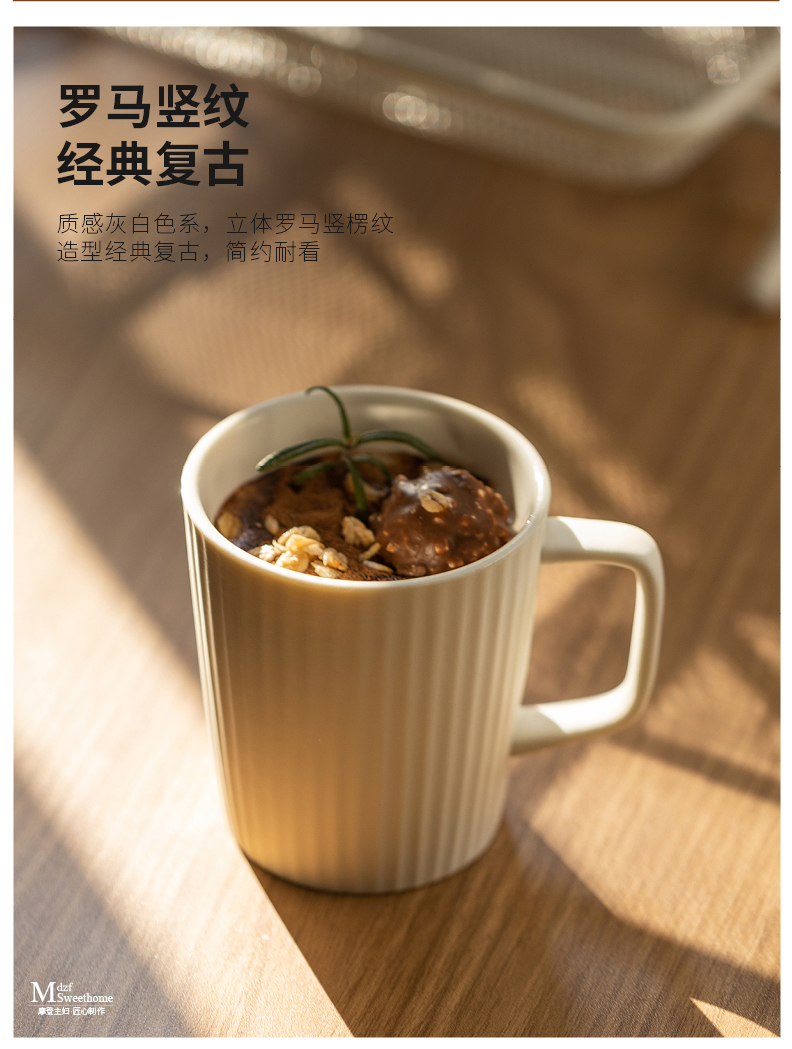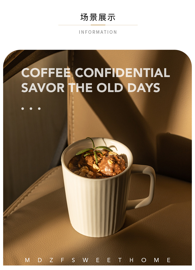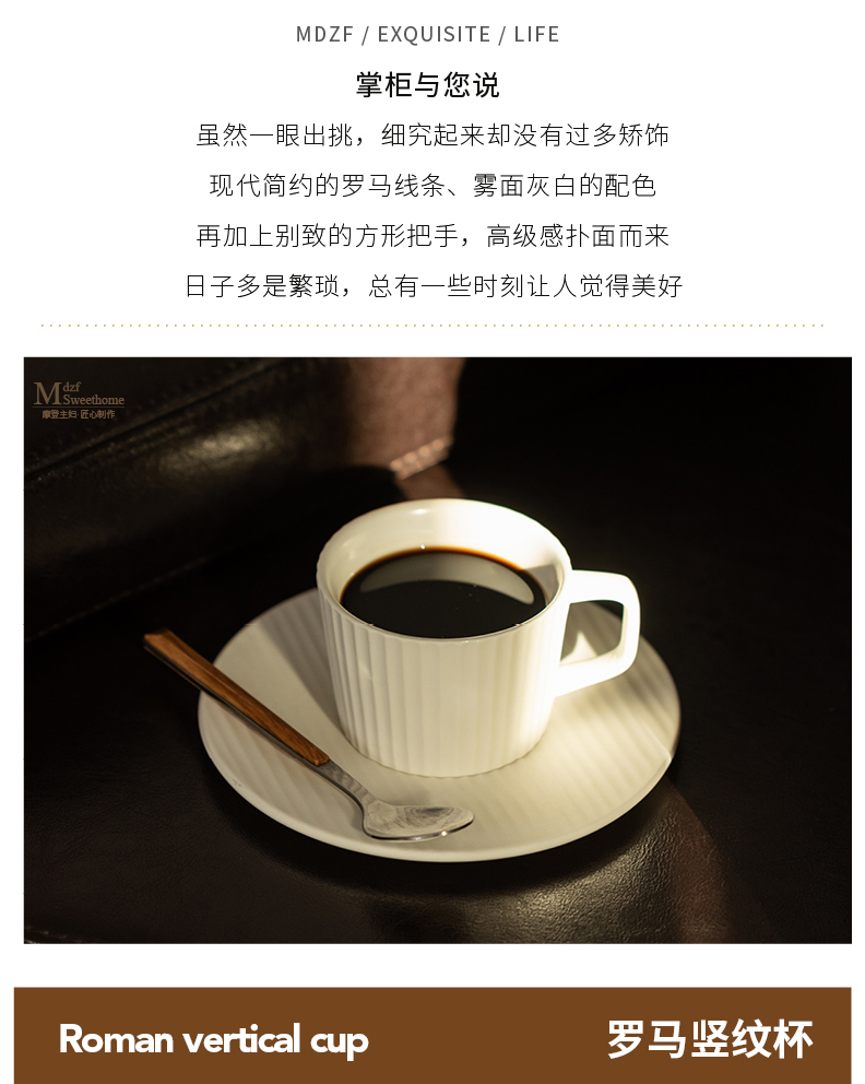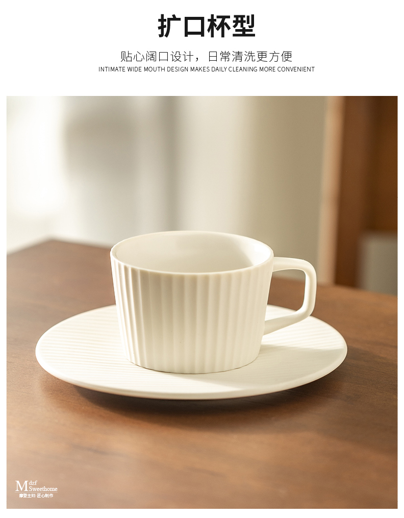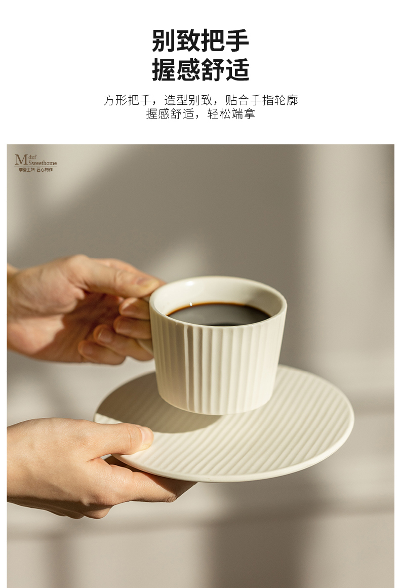 摩登主妇复古咖啡杯高颜值咖啡杯子家用陶瓷竖纹挂耳咖啡杯碟精致